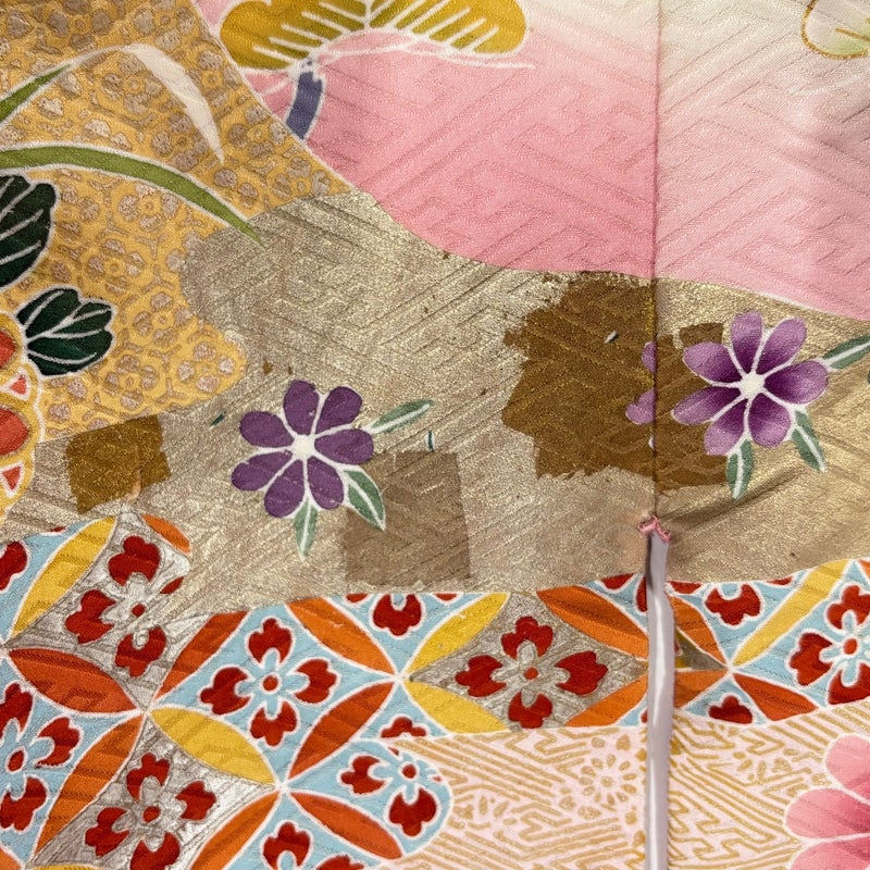 未婚女性の第一礼装としてお使いいただける振袖でございます。 お好みの帯や小物と合わせて晴れの日に相応しい華やかな装いにいかがでしょうか。 ※身丈・裄丈の縫込みの長さは測っておりません。 衿周りや両袖口中と上前の裾付近に汚れ、表地所々に金彩の剥がれ、表地所々に金彩の変色がございます。 八掛裾部分に生地の傷み、八掛にヤケがございます。 ご購入の際はその点ご留意ください。 ※なお、厳しく商品の状態確認を行っておりますが、記載の汚れ以外にも見落とし箇所がある可能性がある旨ご了承いただけますと幸いです。 沢山の商品の中からご覧いただき誠にありがとうございます。
