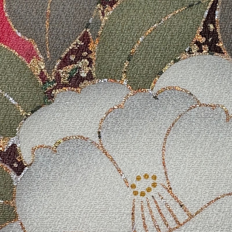 【着物ランク】秀品 【素材】正絹 【身丈】約165cm 【裄丈】約67.5cm 【袖丈】約111cm 【袖幅】約33.5cm 【前幅】約24cm 【後幅】約30cm 【サイズ】L 【着物仕立て】袷 【着用時期】10~5月 【状態ランク】ランクC 【着物着用シーン】成人式、謝恩会