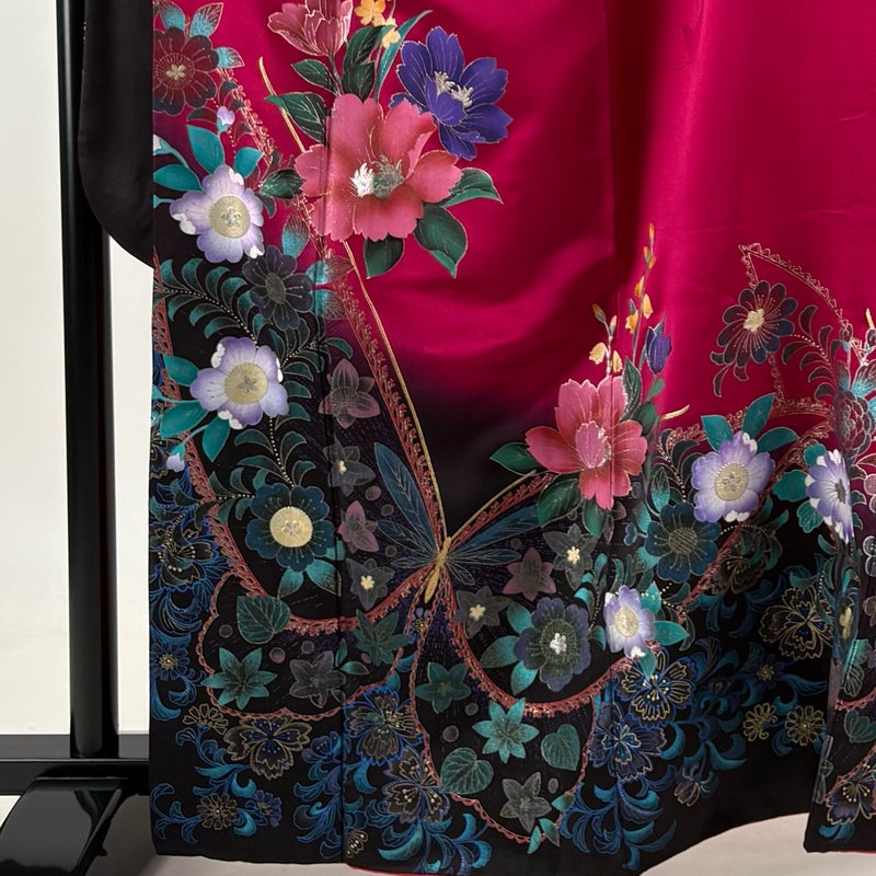 【振袖】 赤系 濃ピンク 秀品 B 約160cm~約169cm 裄丈69cm以上 (L)size 袖丈91cm以上 7990-9980 二万以下