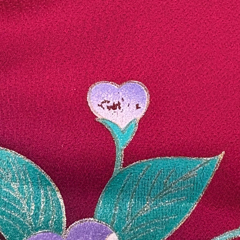 【着物ランク】秀品 【素材】正絹 【身丈】約164cm 【裄丈】約70cm 【袖丈】約115.5cm 【袖幅】約36cm 【前幅】約25cm 【後幅】約30.5cm 【サイズ】L 【着物仕立て】袷 【着用時期】10~5月 【状態ランク】ランクB 【着物着用シーン】成人式、謝恩会