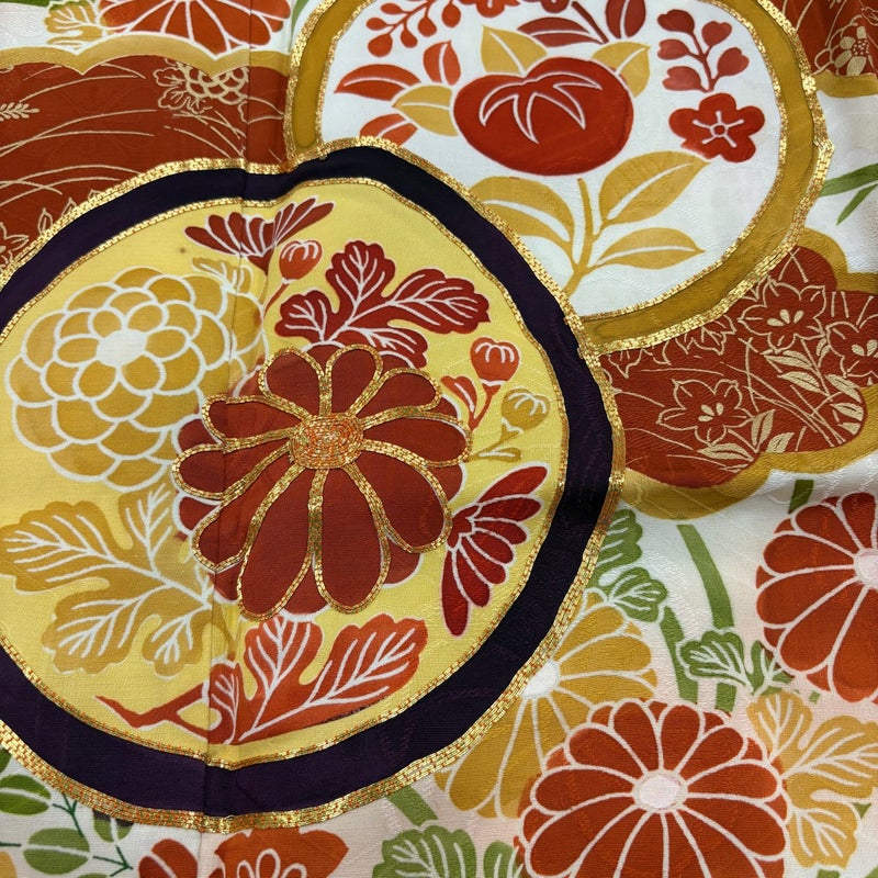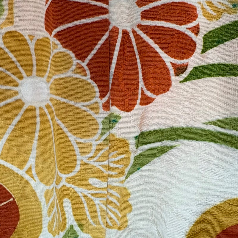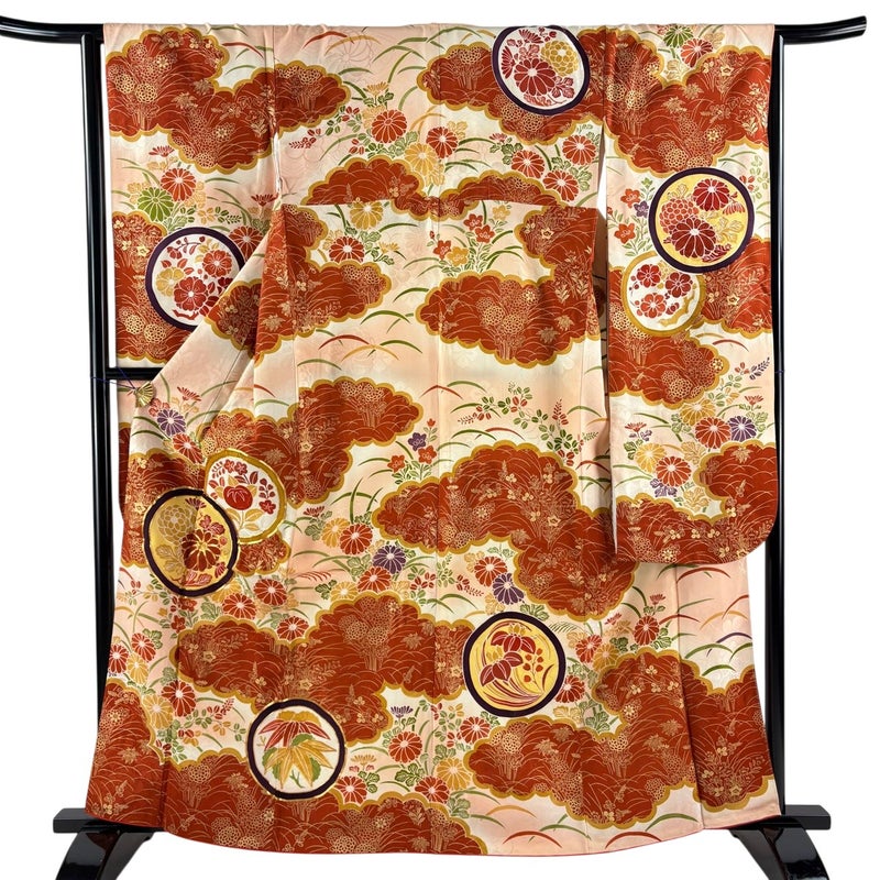【着物ランク】秀品 【素材】正絹 【身丈】約163cm 【裄丈】約64cm 【袖丈】約104cm 【袖幅】約32.5cm 【前幅】約23.5cm 【後幅】約31cm 【サイズ】M 【着物仕立て】袷 【着用時期】10~5月 【状態ランク】ランクC 【着物着用シーン】成人式、謝恩会