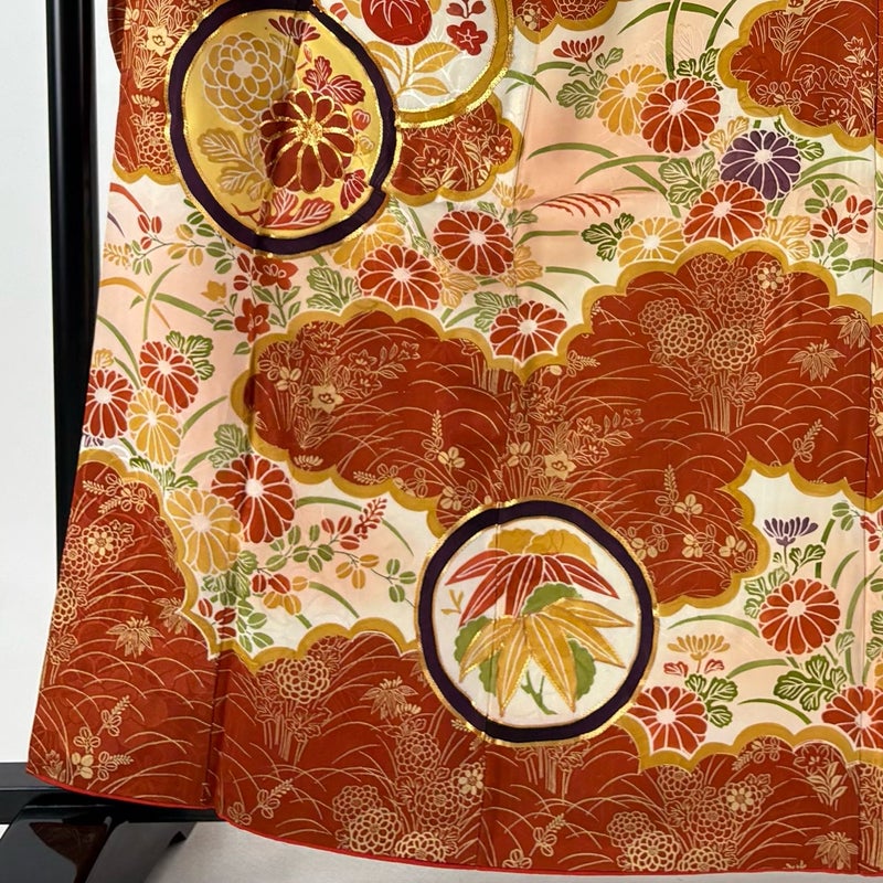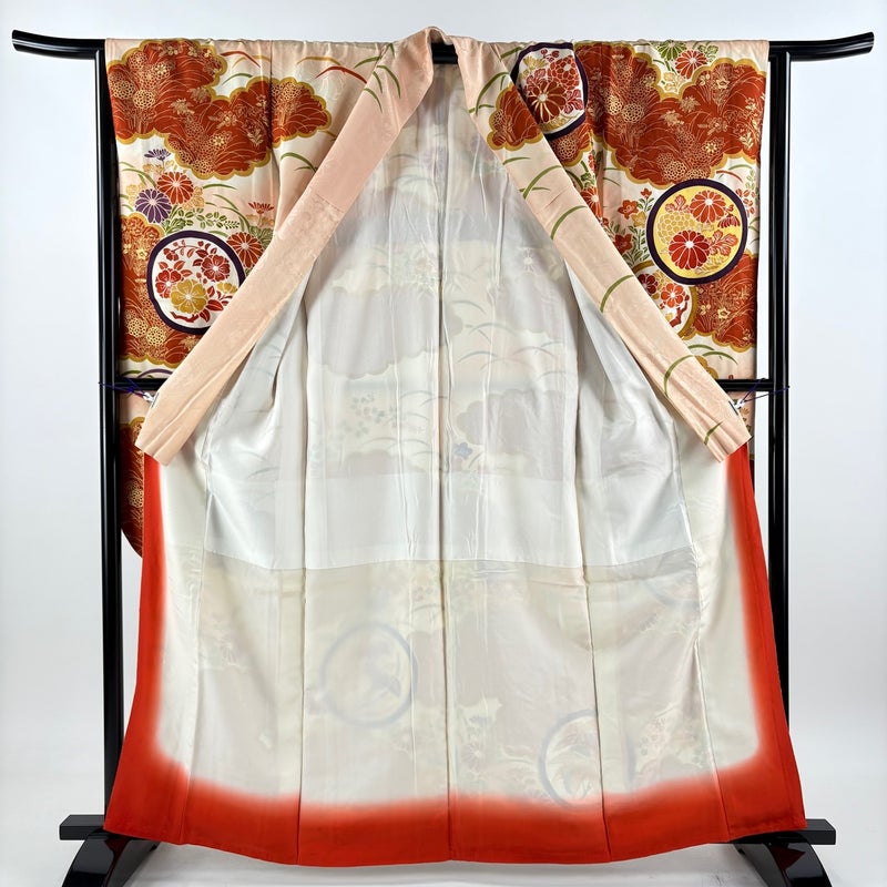 【振袖】 赤系 朱色 秀品 C 約160cm~約169cm 裄丈63cm-64cm (M)size 袖丈91cm以上 7990-9980 二万以下