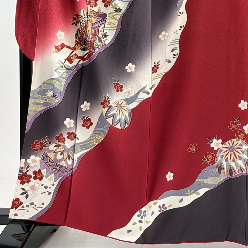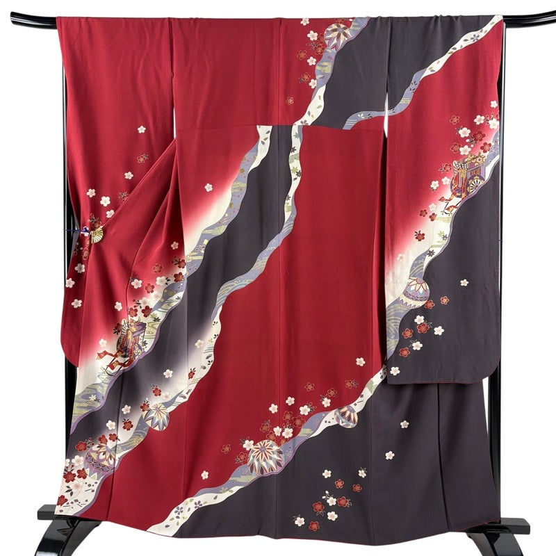 【振袖】 赤系 赤 秀品 B 約160cm~約169cm 裄丈67cm-68cm (L)size 袖丈91cm以上 7990-9980 二万以下