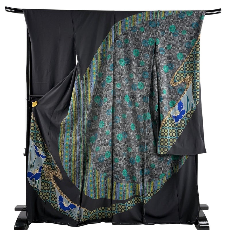 【振袖】 黒系 黒 秀品 A 約170cm~約179cm 裄丈69cm以上 袖丈91cm以上 9990-29990 美品 二万以下