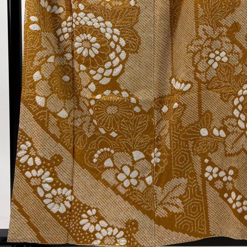 【振袖】 黄色系 山吹茶色 秀品 A 約150cm~約159cm 裄丈63cm-64cm (M)size 袖丈91cm以上 9990-29990 美品 二万以下