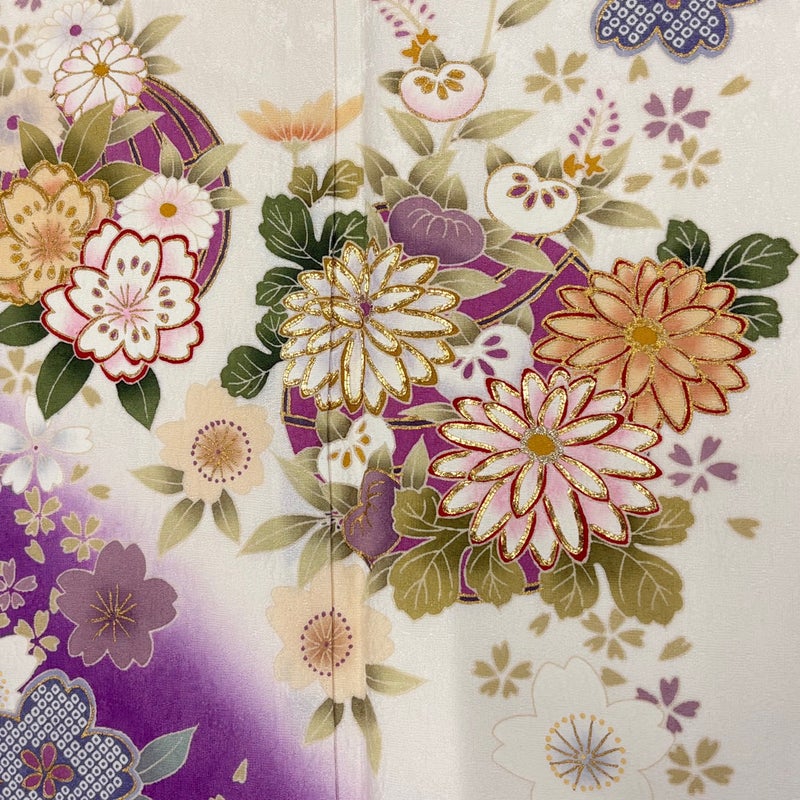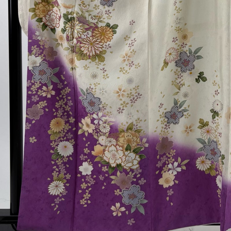 【振袖】 白系 クリーム 秀品 B 約160cm~約169cm 裄丈67cm-68cm (M)size 袖丈91cm以上 7990-9980 二万以下
