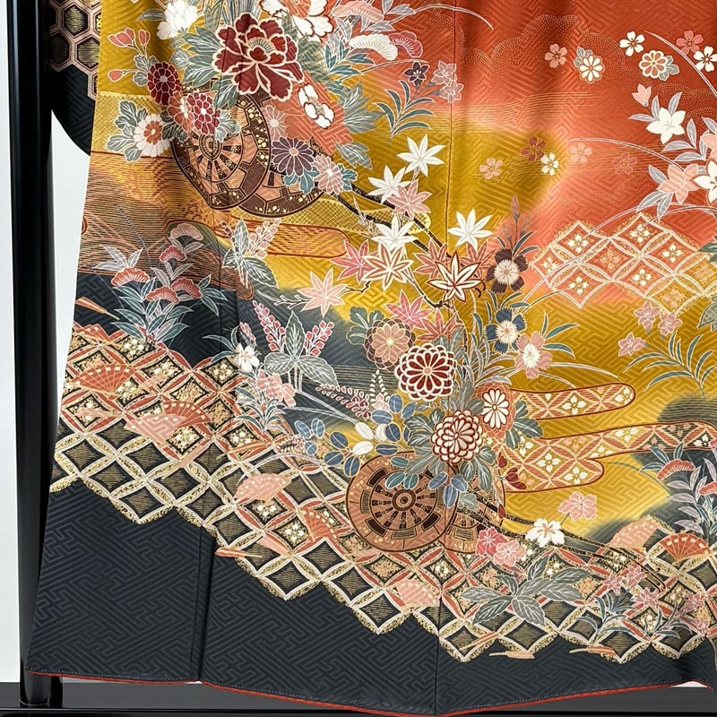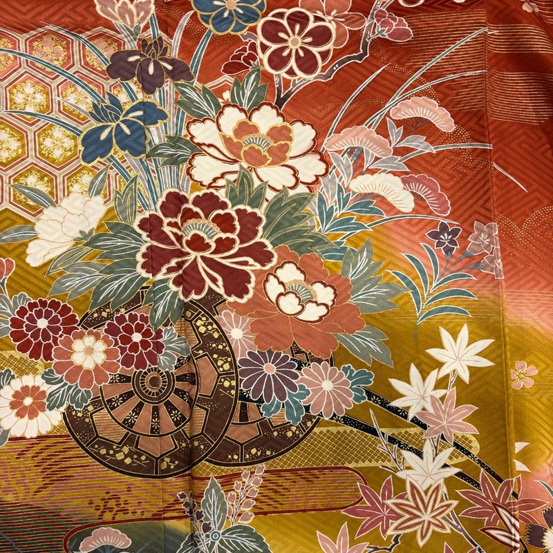 【振袖】 赤系 赤茶 秀品 B 約150cm~約159cm 裄丈63cm-64cm (S)size 袖丈91cm以上 7990-9980 二万以下