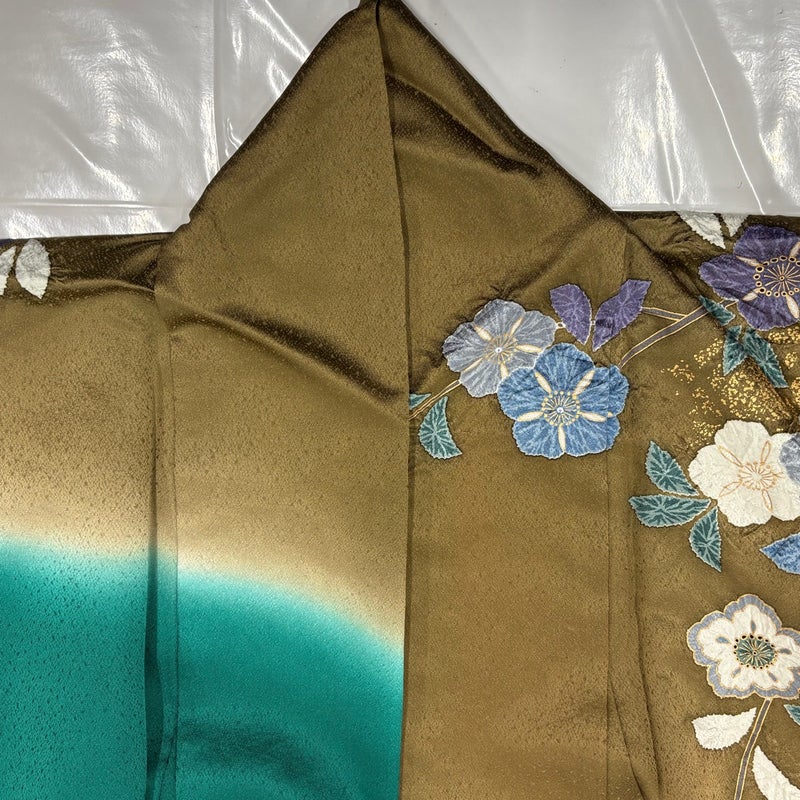 【振袖】 黄色系 黄土色 秀品 B 約160cm~約169cm 裄丈69cm以上 (L)size 袖丈91cm以上 7990-9980 二万以下
