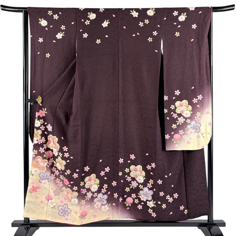 【振袖】 茶系 茶紫 秀品 B 約150cm~約159cm 裄丈63cm-64cm (M)size 袖丈91cm以上 7990-9980 二万以下
