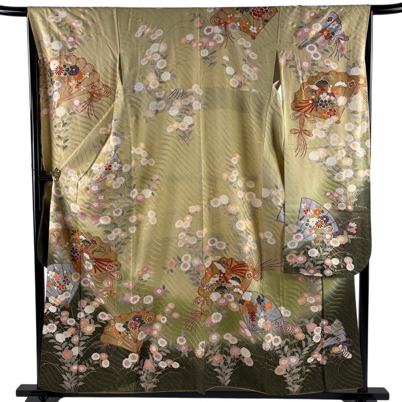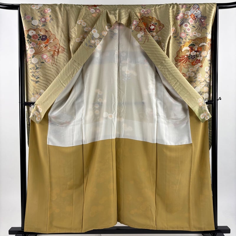 【振袖】 灰色系 灰緑 秀品 A 約150cm~約159cm 裄丈67cm-68cm (M)size 袖丈91cm以上 9990-29990 美品 二万以下
