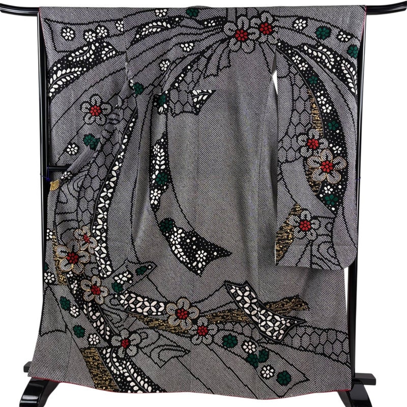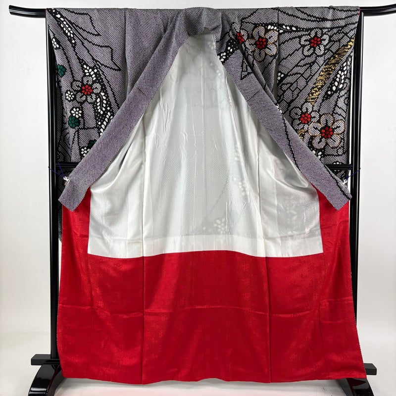 【振袖】 黒系 黒 秀品 C 約160cm~約169cm 裄丈66cm (M)size 袖丈91cm以上 7990-9980 二万以下