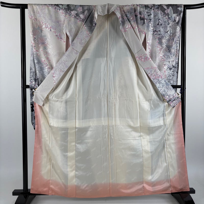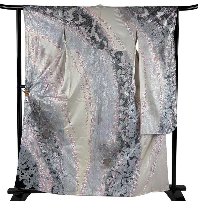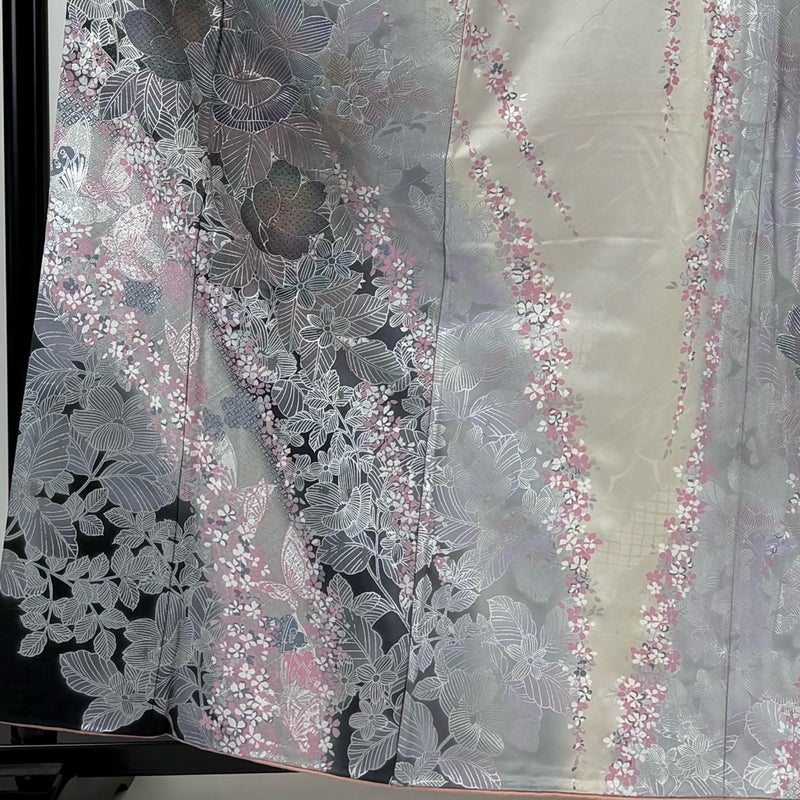 【振袖】 灰色系 灰色 秀品 C 約160cm~約169cm 裄丈63cm-64cm (S)size 袖丈91cm以上 7990-9980 二万以下