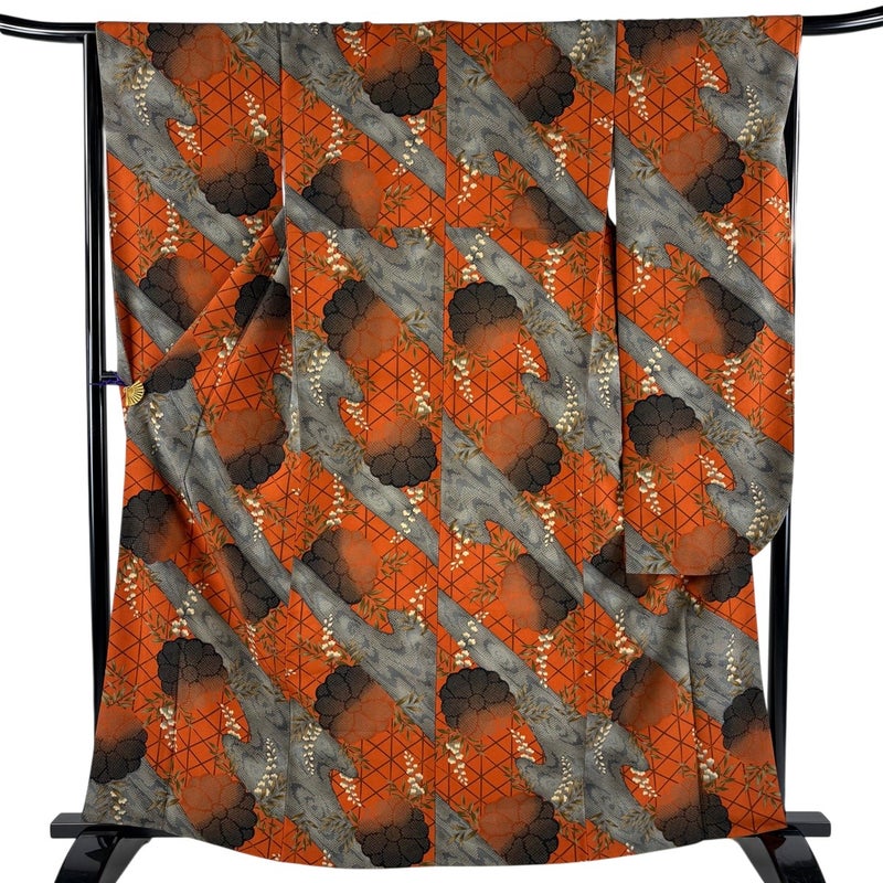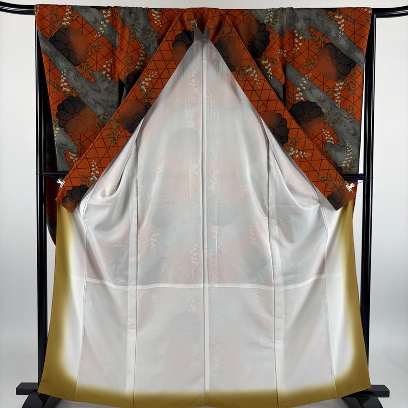 【振袖】 赤系 オレンジ 優品 A 約160cm~約169cm 裄丈66cm (M)size 袖丈91cm以上 4000-7980 美品 二万以下