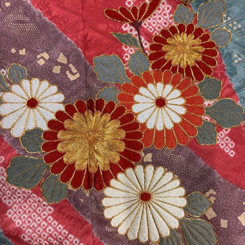 【着物ランク】秀品 【素材】正絹 【身丈】約163cm 【裄丈】約67cm 【袖丈】約107cm 【袖幅】約34cm 【前幅】約24.5cm 【後幅】約30.5cm 【サイズ】M 【着物仕立て】袷 【着用時期】10~5月 【状態ランク】ランクB 【着物着用シーン】成人式、謝恩会