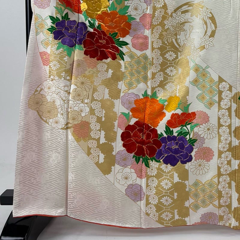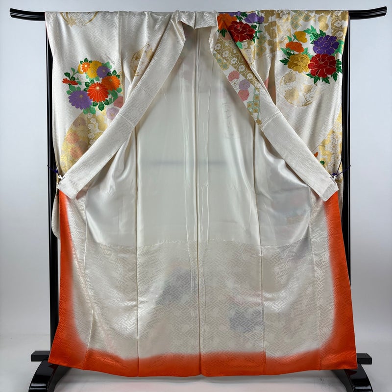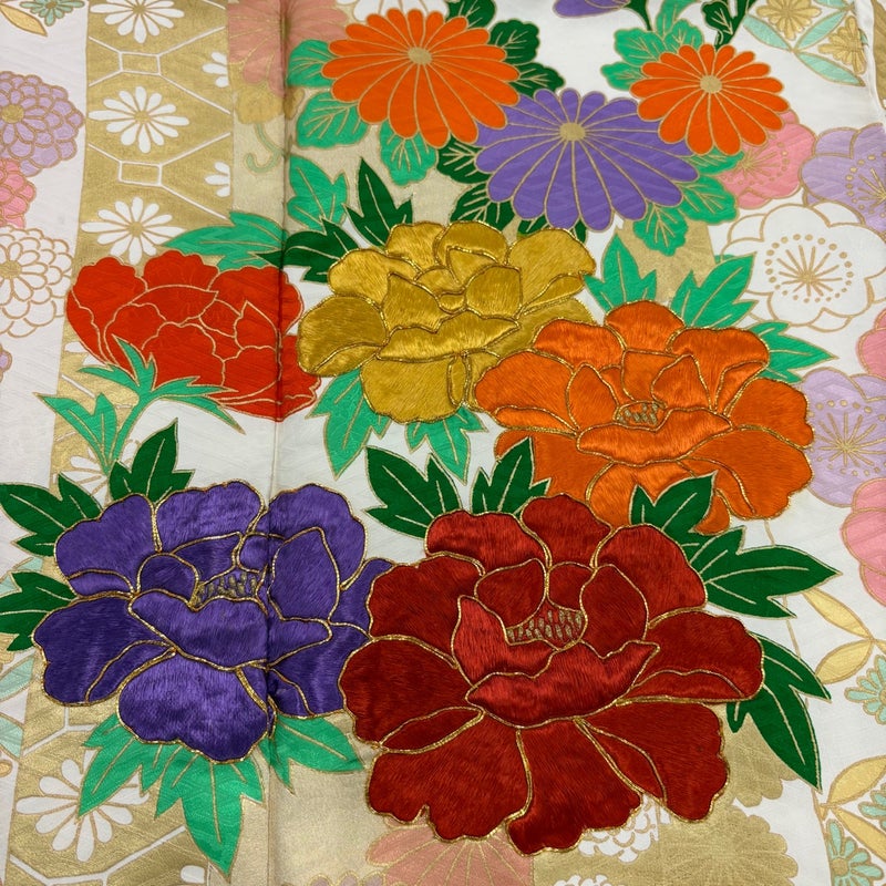 【振袖】 白系 クリーム 秀品 B 約160cm~約169cm 裄丈63cm-64cm (M)size 袖丈91cm以上 7990-9980 二万以下