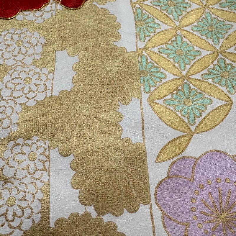 【着物ランク】秀品 【素材】正絹 【身丈】約166cm 【裄丈】約64.5cm 【袖丈】約104.5cm 【袖幅】約34.5cm 【前幅】約24.5cm 【後幅】約29.5cm 【サイズ】M 【着物仕立て】袷 【着用時期】10~5月 【状態ランク】ランクB 【着物着用シーン】成人式、謝恩会