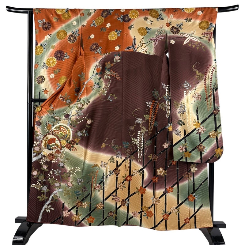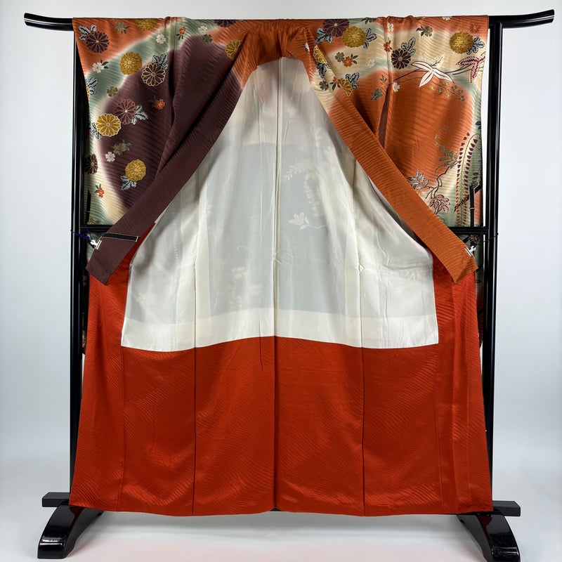 【振袖】 赤系 赤茶 秀品 B 約160cm~約169cm 裄丈66cm (M)size 袖丈91cm以上 7990-9980 二万以下