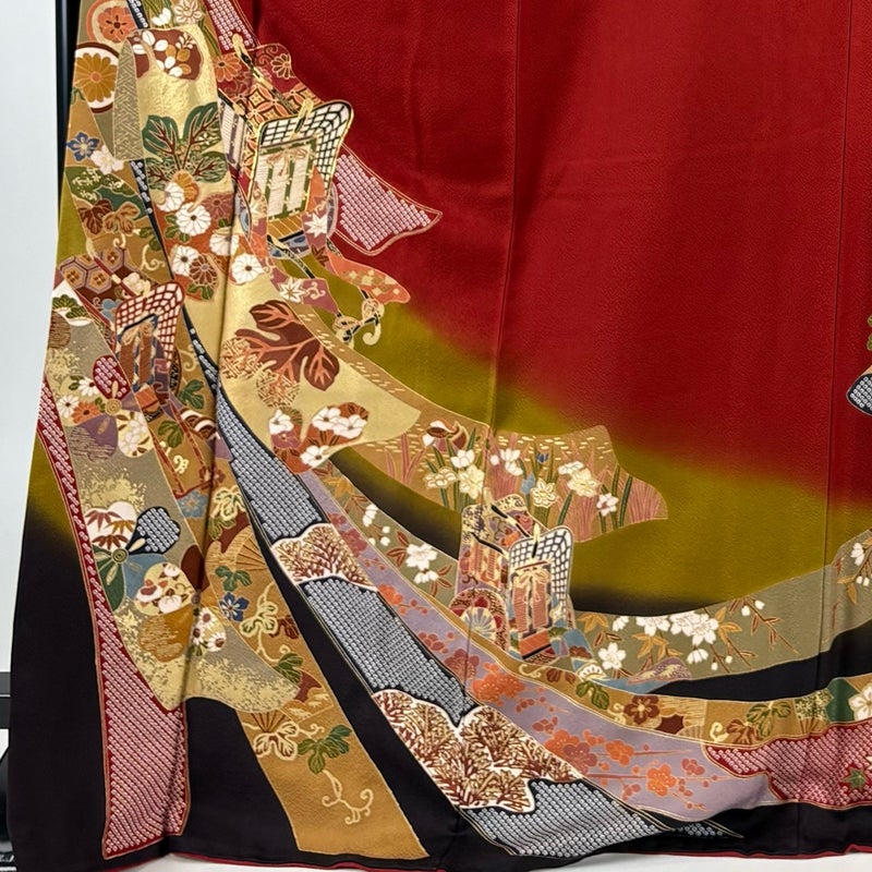 【振袖】 赤系 赤 秀品 B 約170cm~約179cm 裄丈69cm以上 (L)size 袖丈91cm以上 7990-9980 二万以下