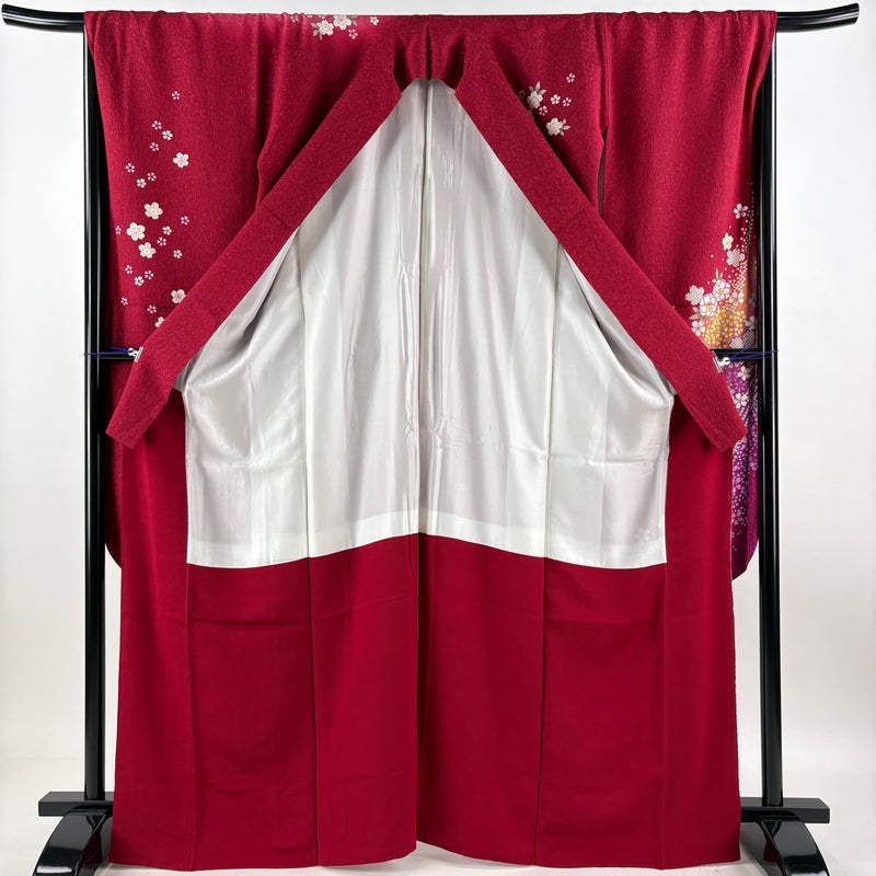 【振袖】 赤系 赤 秀品 B 約160cm~約169cm 裄丈67cm-68cm (M)size 袖丈91cm以上 7990-9980 二万以下
