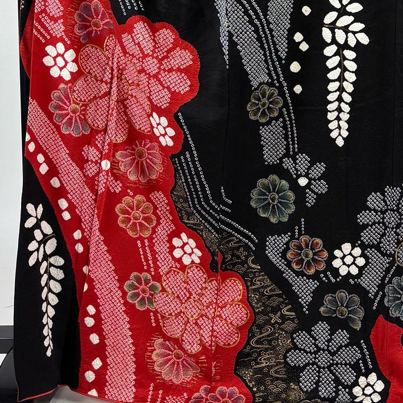 【着物ランク】秀品 【素材】正絹 【身丈】約168.5cm 【裄丈】約68cm 【袖丈】約110cm 【袖幅】約35.5cm 【前幅】約27cm 【後幅】約34cm 【サイズ】L 【着物仕立て】袷 【着用時期】10~5月 【状態ランク】ランクA 【着物着用シーン】成人式、謝恩会
