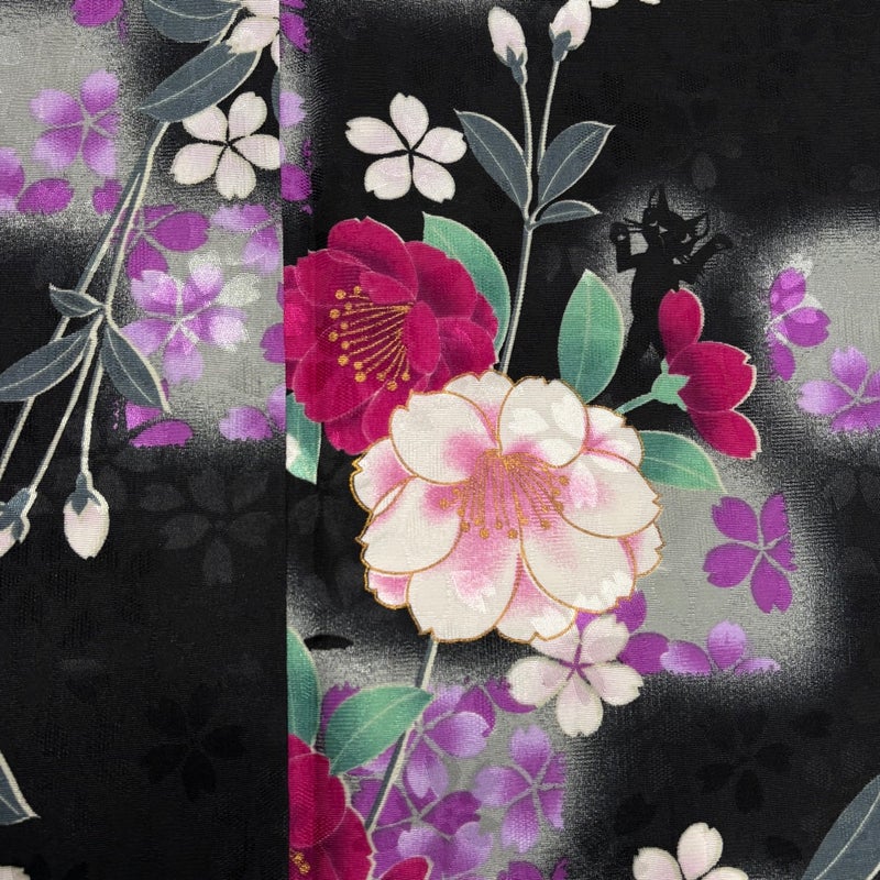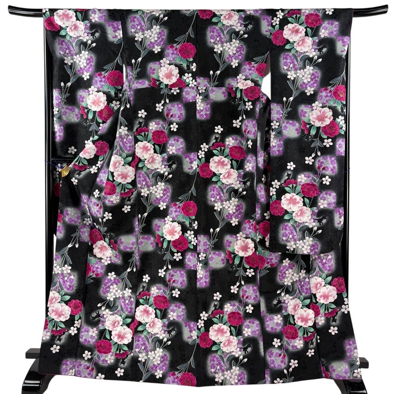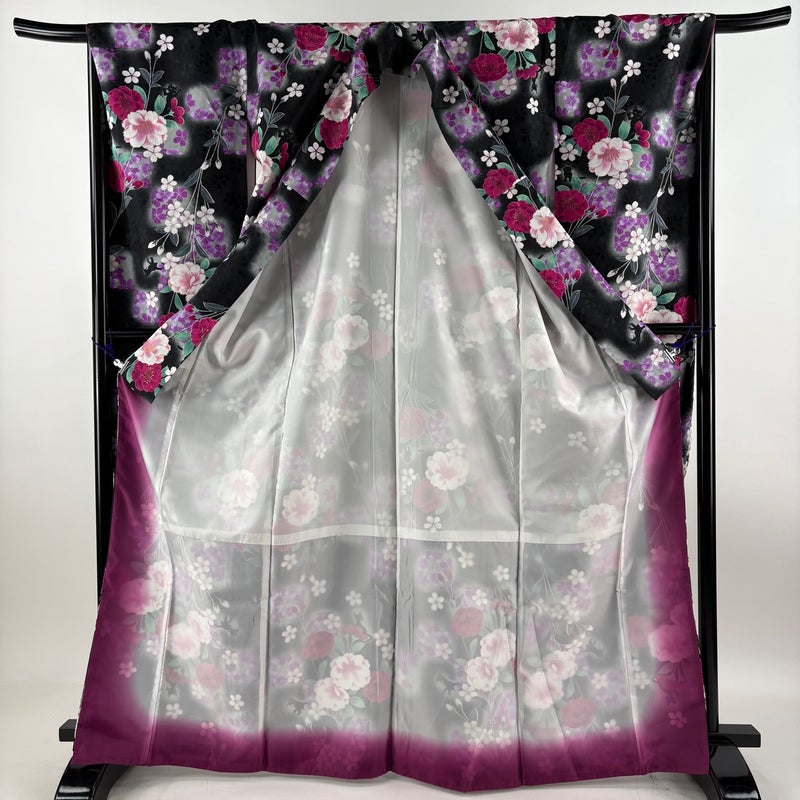 【振袖】 黒系 黒 優品 B 約160cm~約169cm 裄丈67cm-68cm (M)size 袖丈91cm以上 4000-7980 二万以下