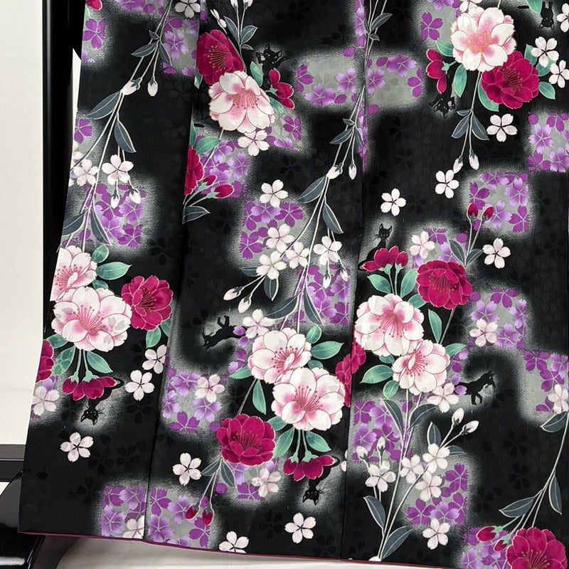 【着物ランク】優品 【素材】化繊 【身丈】約167.5cm 【裄丈】約67cm 【袖丈】約107cm 【袖幅】約34.5cm 【前幅】約24cm 【後幅】約29.5cm 【サイズ】M 【着物仕立て】袷 【着用時期】10~5月 【状態ランク】ランクB 【着物着用シーン】成人式、謝恩会