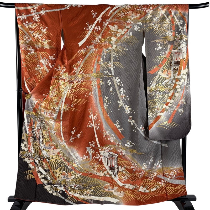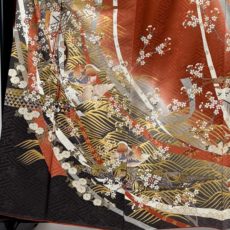 【振袖】 赤系 赤茶 秀品 B 約160cm~約169cm 裄丈67cm-68cm (M)size 袖丈91cm以上 7990-9980 二万以下