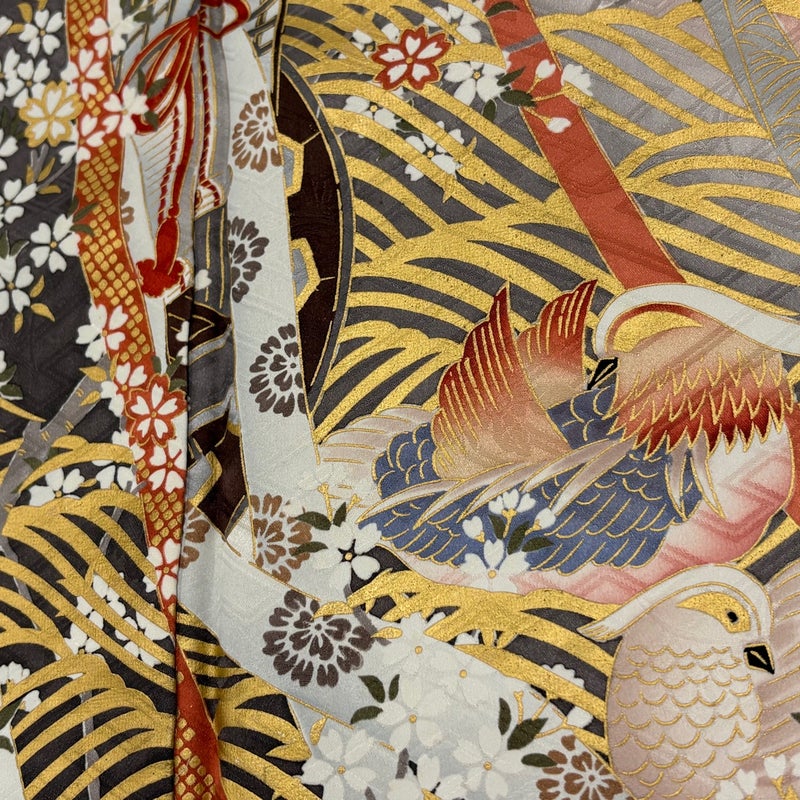 未婚女性の第一礼装としてお使いいただける振袖でございます。 お好みの帯や小物と合わせて晴れの日に相応しい華やかな装いにいかがでしょうか。 ※身丈・裄丈の縫込みの長さは測っておりません。 上前と後身頃の所々にシミ、衿周りや両袖口中に汚れ、表地所々に金彩の変色がございます。 リユース品としては良い状態で、まだまだご活用頂けると思われます。 ※なお、厳しく商品の状態確認を行っておりますが、記載の汚れ以外にも見落とし箇所がある可能性がある旨ご了承いただけますと幸いです。 沢山の商品の中からご覧いただき誠にありがとうございます。