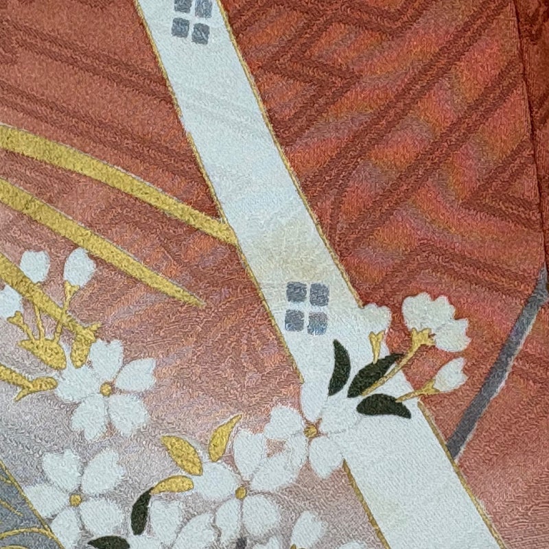 【着物ランク】秀品 【素材】正絹 【身丈】約161cm 【裄丈】約67cm 【袖丈】約107.5cm 【袖幅】約34cm 【前幅】約24.5cm 【後幅】約30cm 【サイズ】M 【着物仕立て】袷 【着用時期】10~5月 【状態ランク】ランクB 【着物着用シーン】成人式、謝恩会