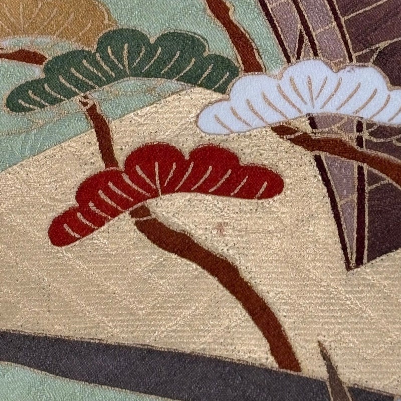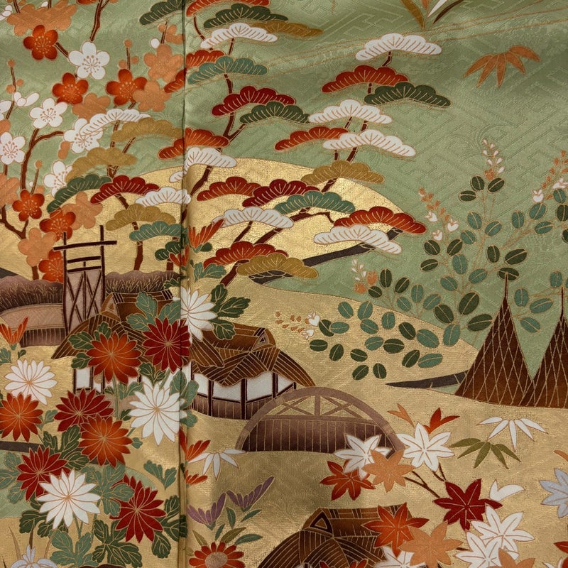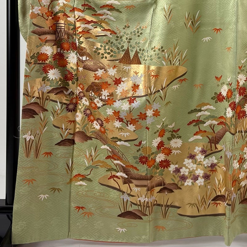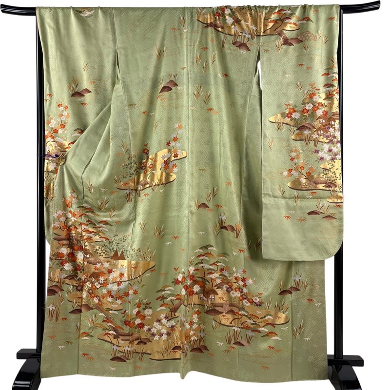 【振袖】 緑系 抹茶色 秀品 B 約160cm~約169cm 裄丈67cm-68cm (L)size 袖丈91cm以上 7990-9980 二万以下