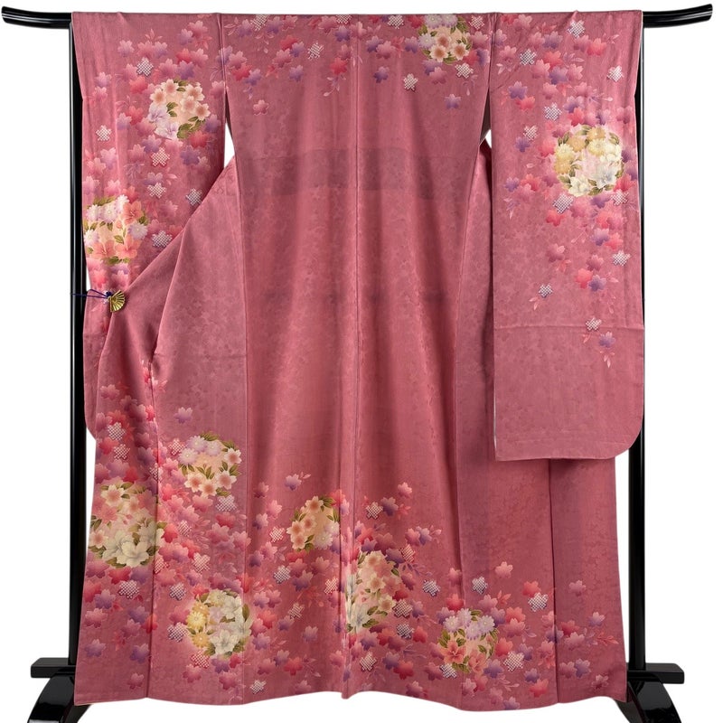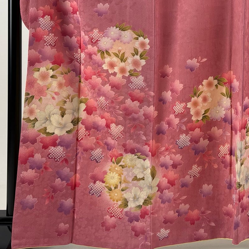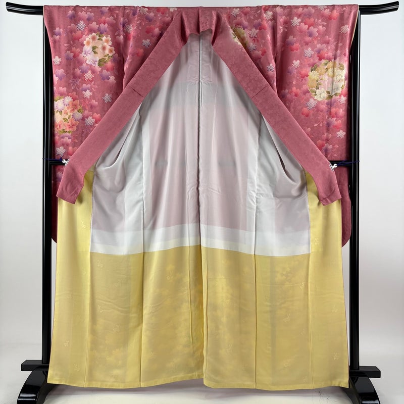 【振袖】 赤系 ピンク 秀品 B 約160cm~約169cm 裄丈67cm-68cm (M)size 袖丈91cm以上 7990-9980 二万以下