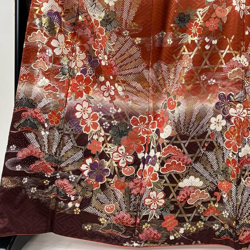 【振袖】 赤系 茜色 秀品 A 約160cm~約169cm 裄丈67cm-68cm (L)size 袖丈91cm以上 9990-29990 美品 二万以下