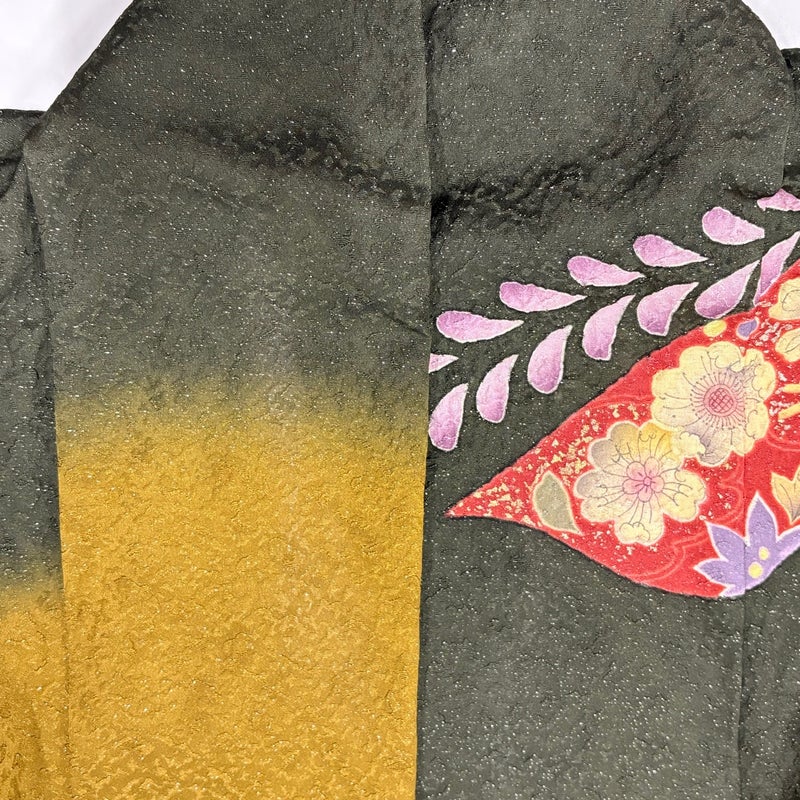 【着物ランク】逸品 【素材】正絹 【身丈】約159cm 【裄丈】約65.5cm 【袖丈】約112cm 【袖幅】約34cm 【前幅】約26cm 【後幅】約31cm 【サイズ】M 【着物仕立て】袷 【着用時期】10~5月 【状態ランク】ランクB 【着物着用シーン】成人式、謝恩会