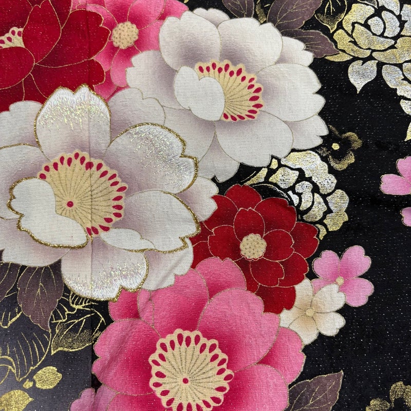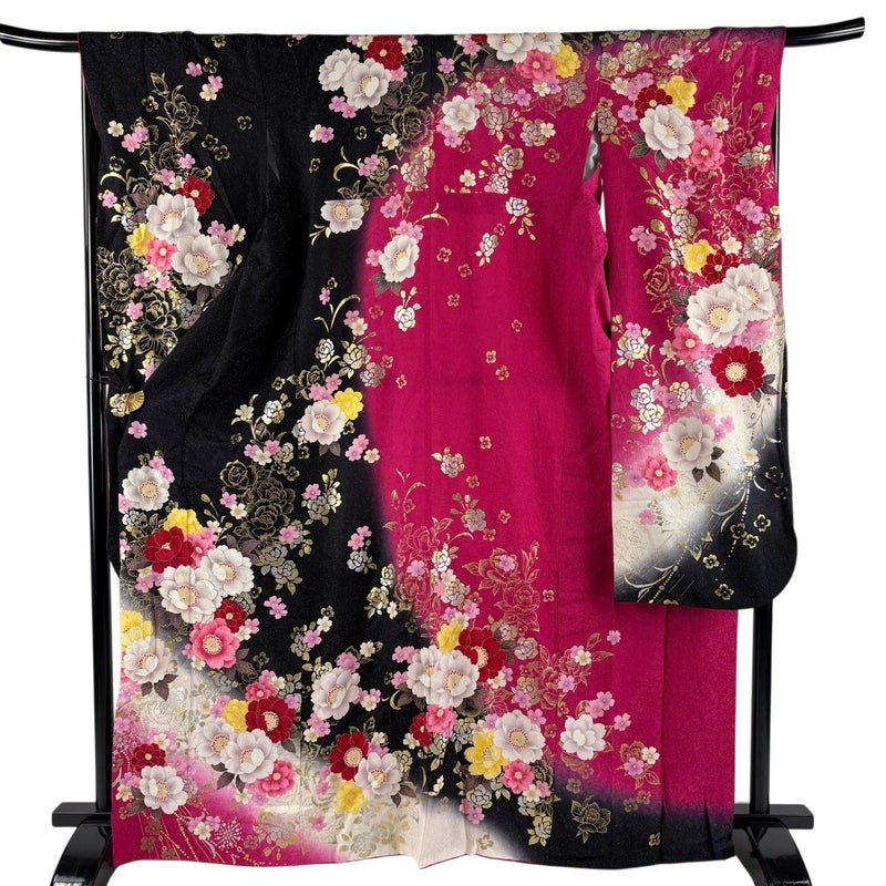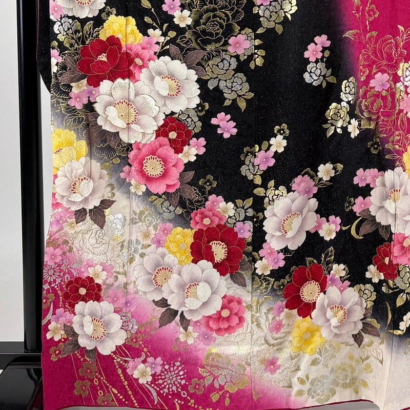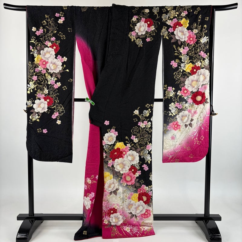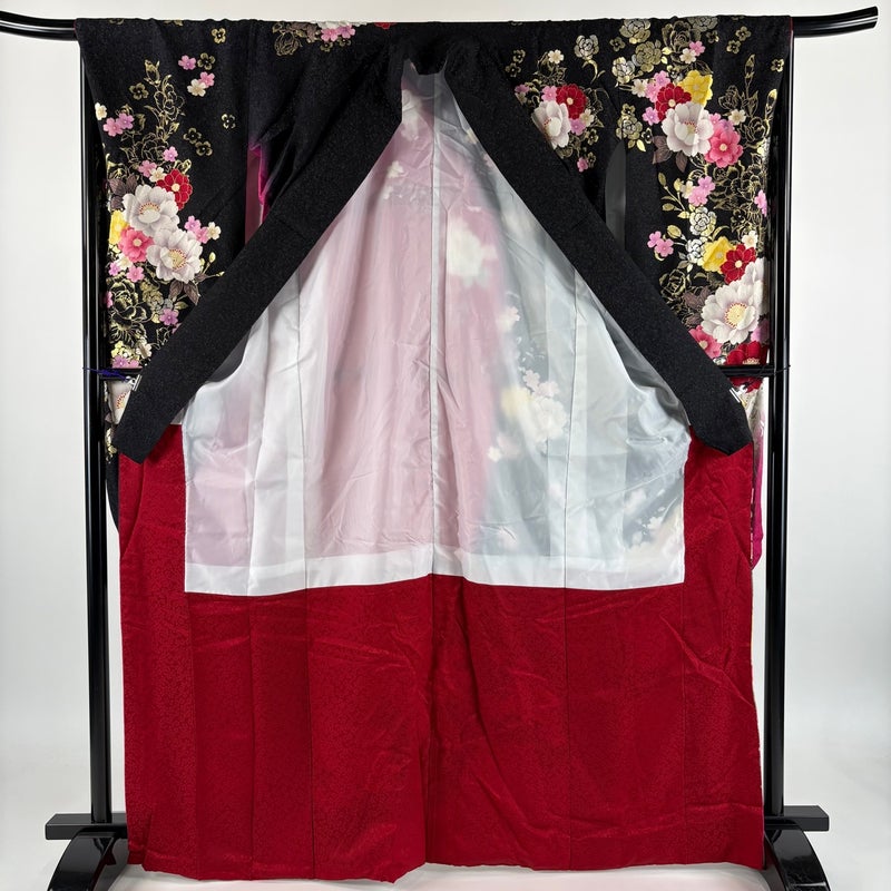 【振袖】 黒系 黒 逸品 B 約160cm~約169cm 裄丈67cm-68cm (M)size 袖丈91cm以上 30000- 五万以下