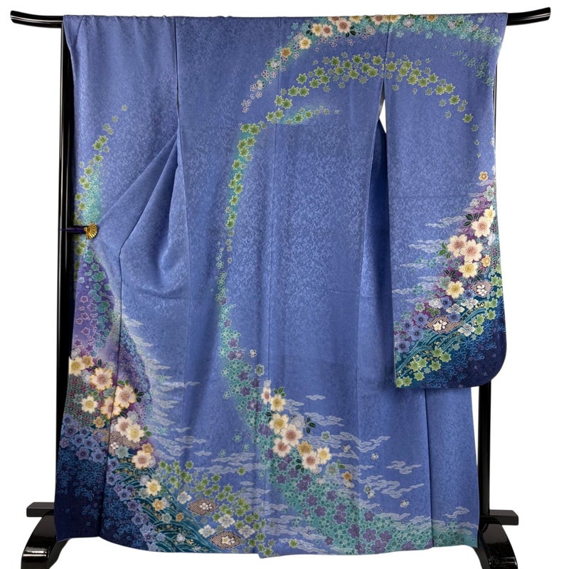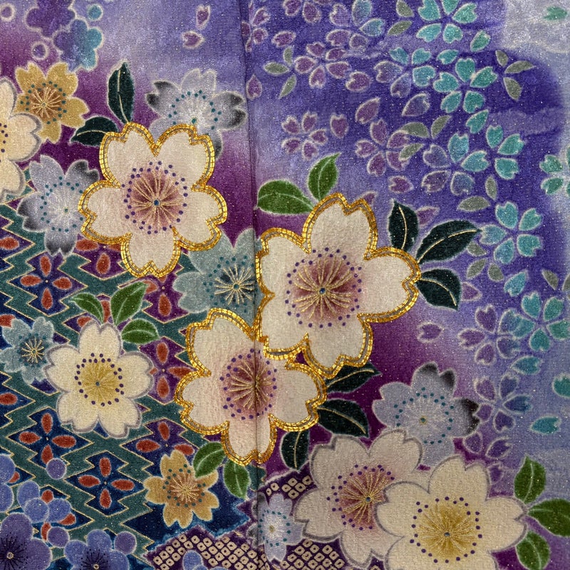 【着物ランク】逸品 【素材】正絹 【身丈】約167.5cm 【裄丈】約69cm 【袖丈】約115cm 【袖幅】約36cm 【前幅】約24.5cm 【後幅】約29.5cm 【サイズ】L 【着物仕立て】袷 【着用時期】10~5月 【状態ランク】ランクB 【着物着用シーン】成人式、謝恩会