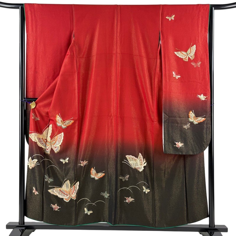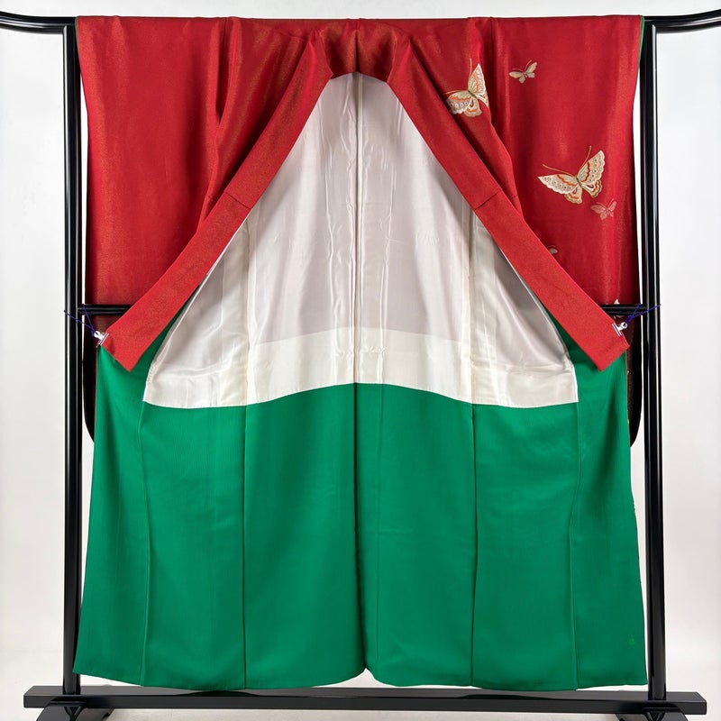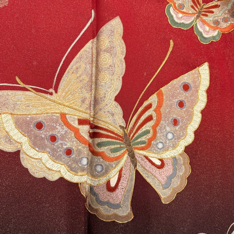 【振袖】 赤系 赤 秀品 C 約150cm~約159cm 裄丈63cm-64cm (M)size 袖丈91cm以上 7990-9980 二万以下
