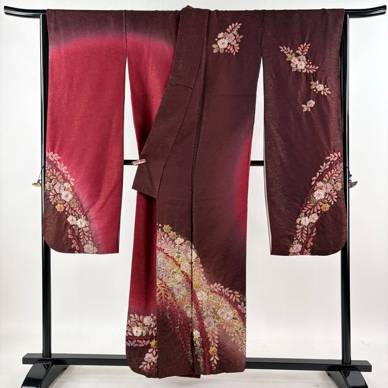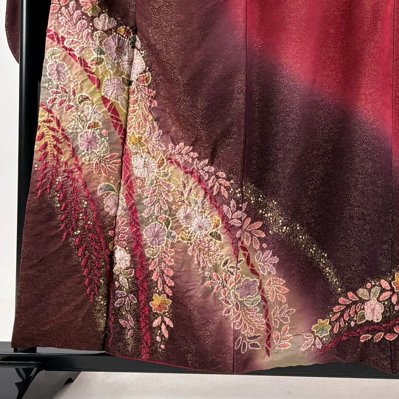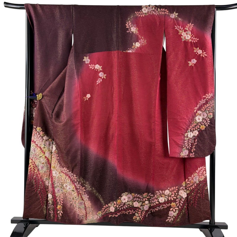 【振袖】 赤系 えんじ色 逸品 A 約150cm~約159cm 裄丈67cm-68cm (L)size 袖丈91cm以上 30000- 美品 五万以上