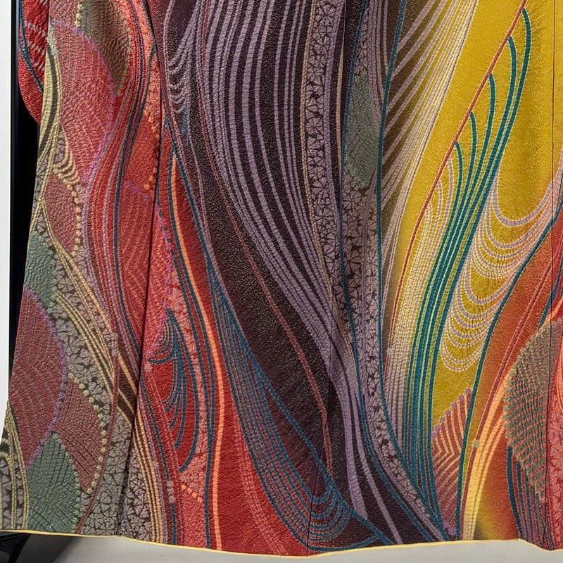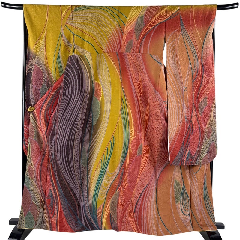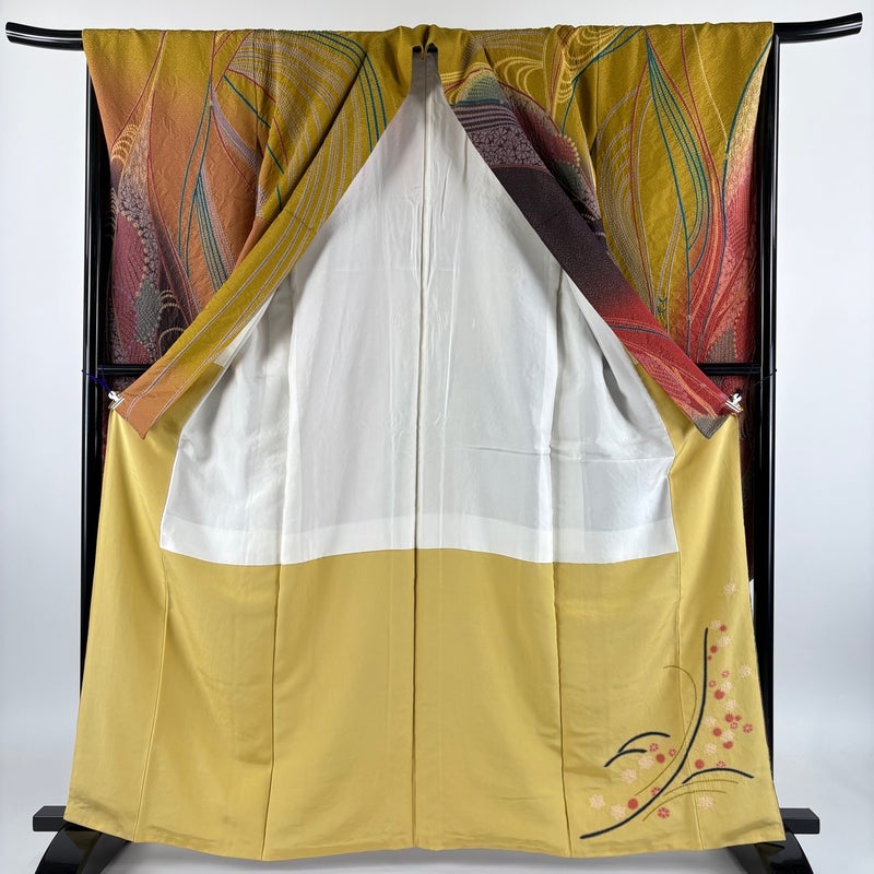 【着物ランク】逸品 【素材】正絹 【身丈】約162cm 【裄丈】約67.5cm 【袖丈】約113.5cm 【袖幅】約34cm 【前幅】約25cm 【後幅】約30cm 【サイズ】L 【着物仕立て】袷 【着用時期】10~5月 【状態ランク】ランクA 【着物着用シーン】成人式、謝恩会
