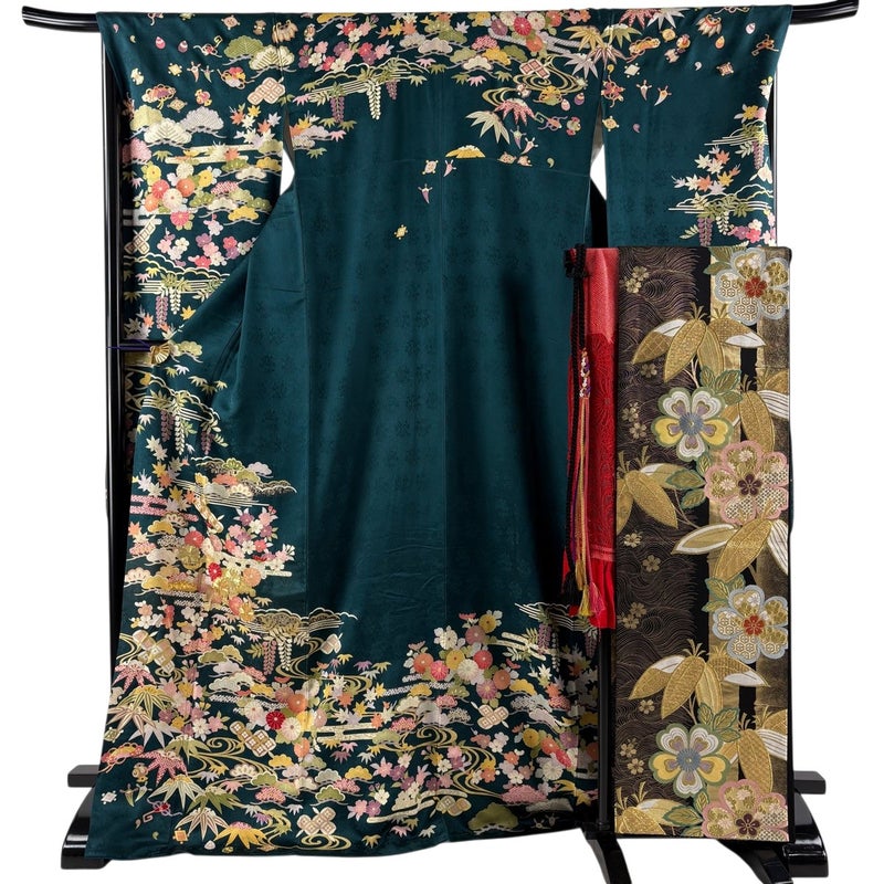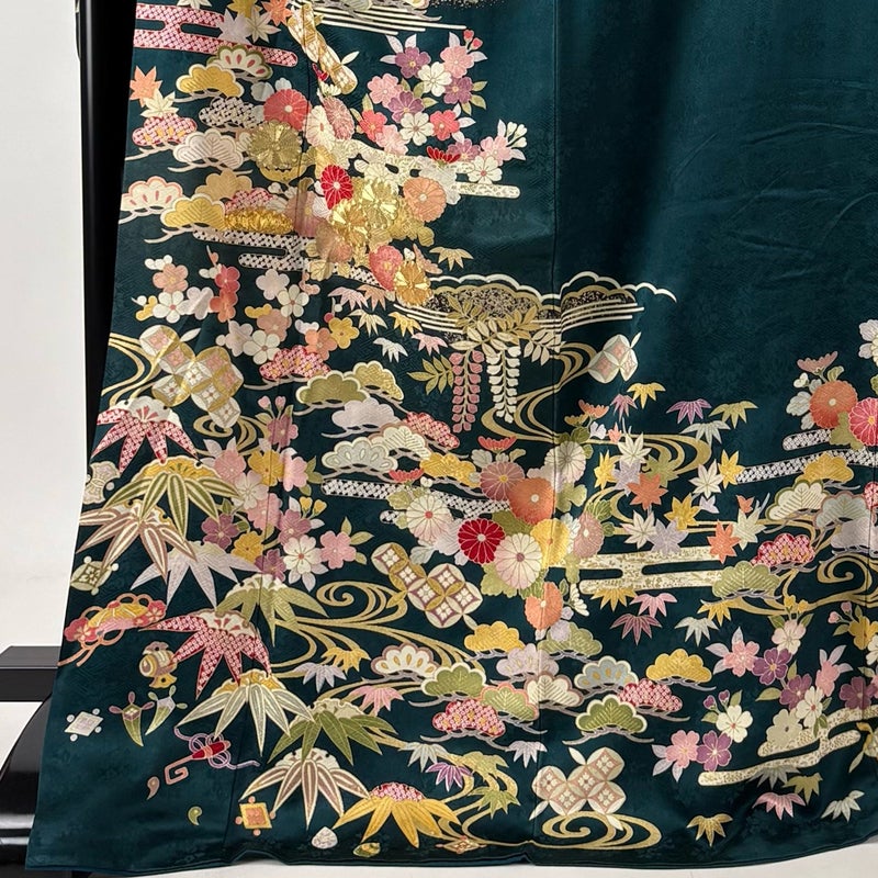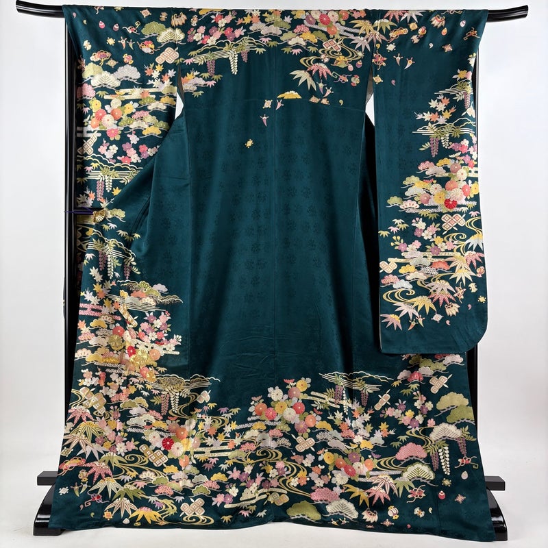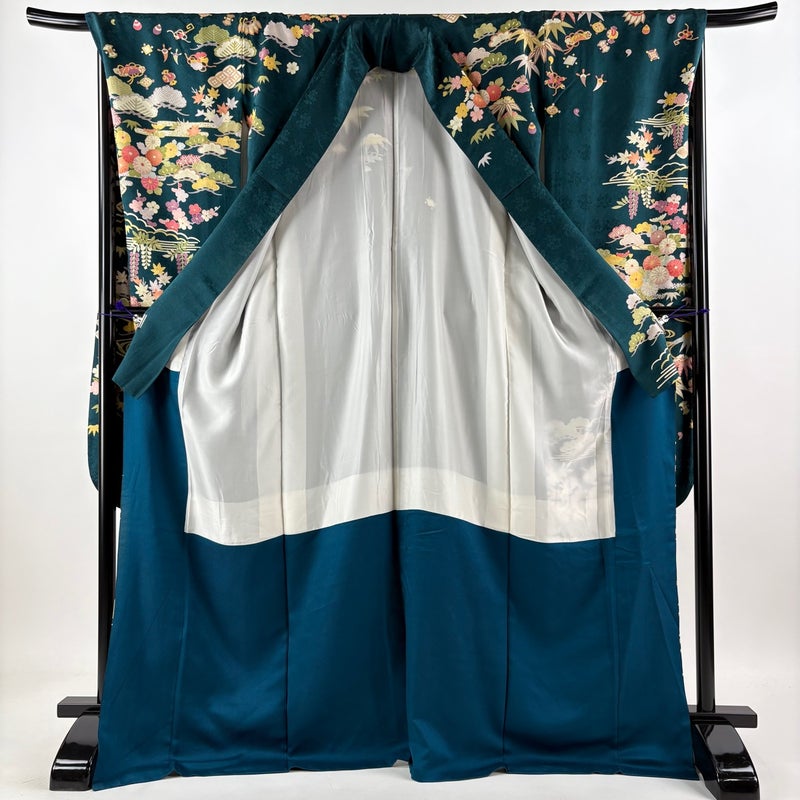 【振袖】 緑系 深緑 秀品 A 約170cm~約179cm 裄丈67cm-68cm (L)size 袖丈91cm以上 9990-29990 美品 五万以下