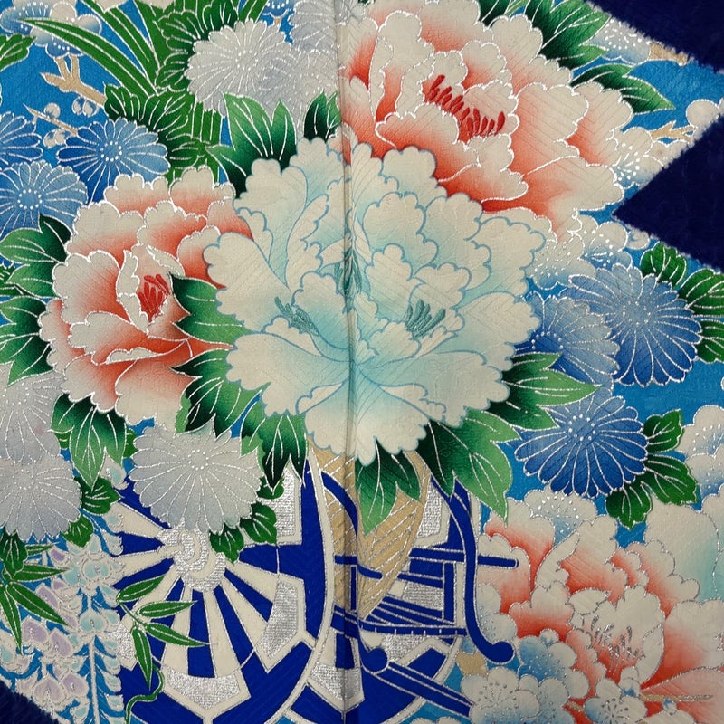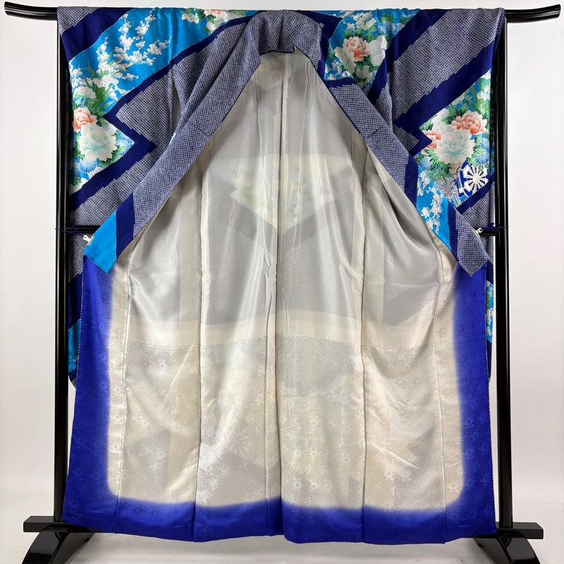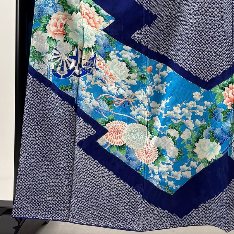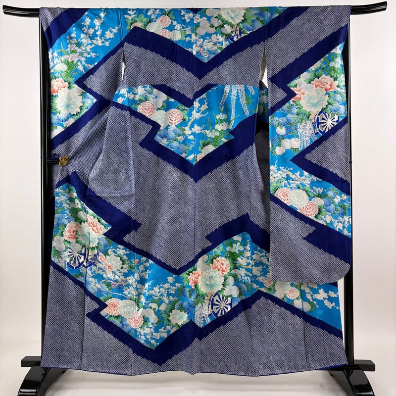 【振袖】 青系 紺色 秀品 B 約160cm~約169cm 裄丈67cm-68cm (M)size 袖丈91cm以上 9990-29990 五万以下
