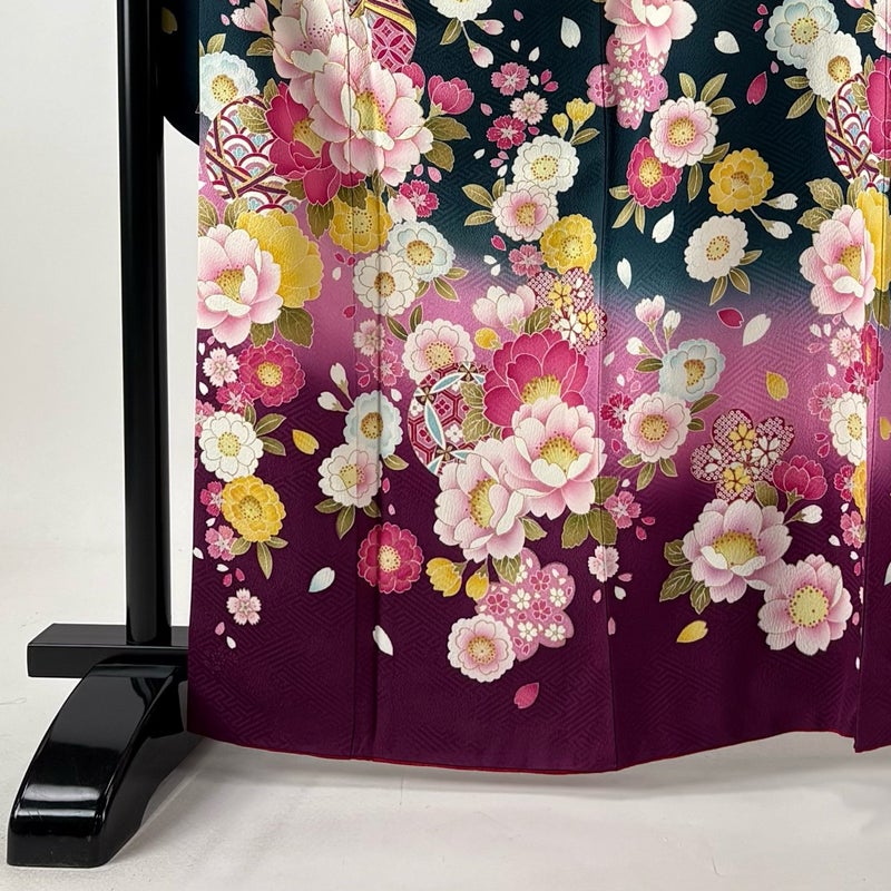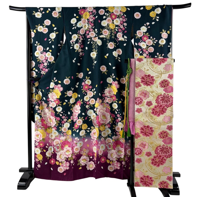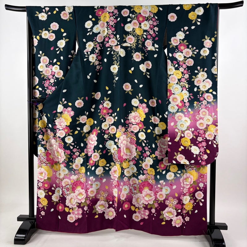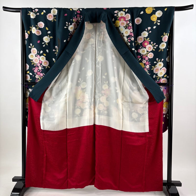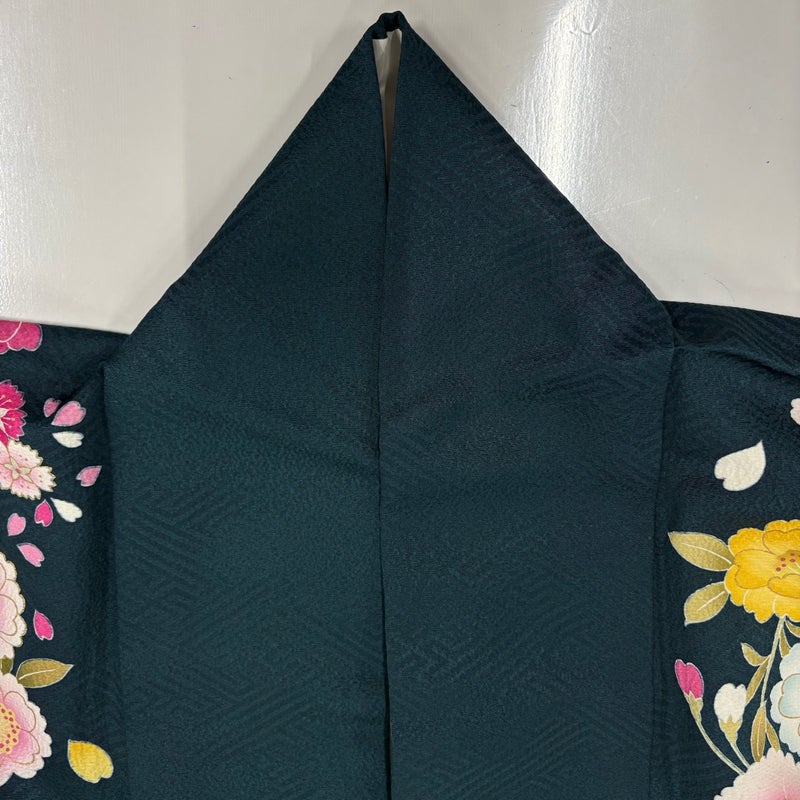 【振袖】 緑系 深緑 秀品 A 約160cm~約169cm 裄丈67cm-68cm (L)size 袖丈91cm以上 9990-29990 美品 五万以下
