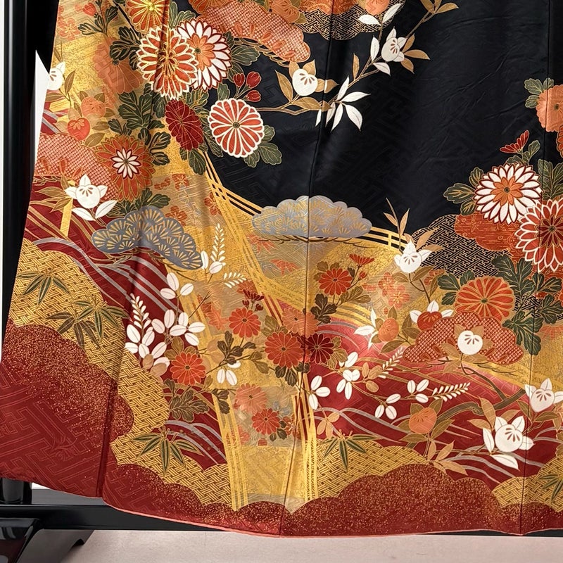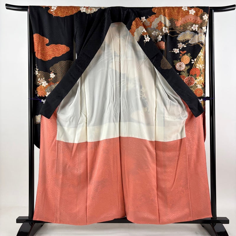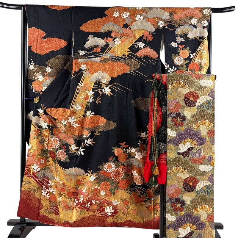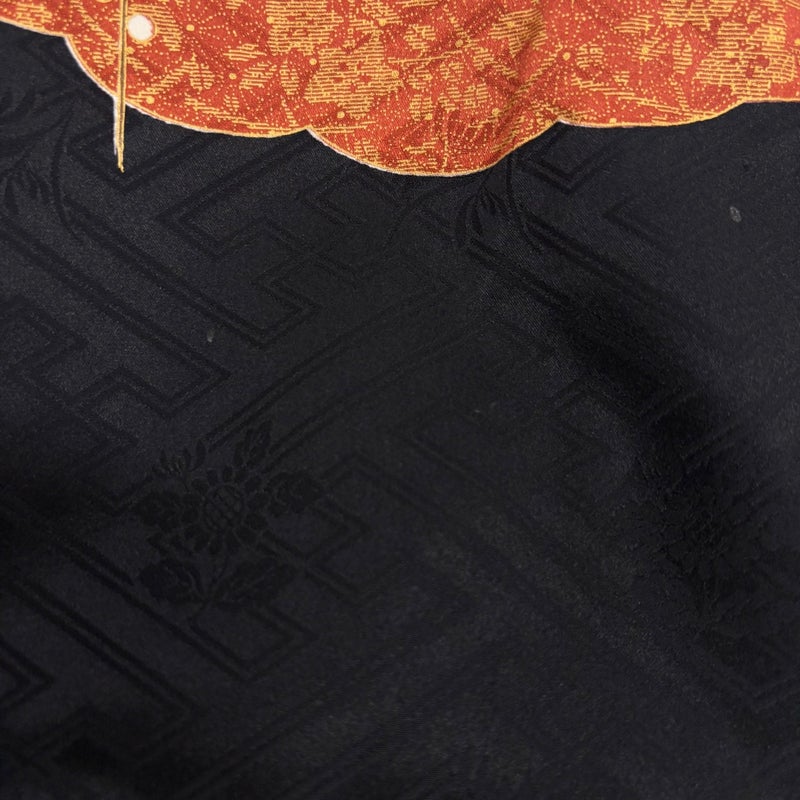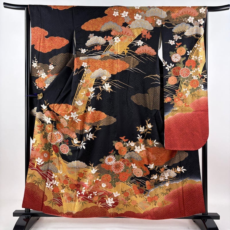 【振袖】 黒系 黒 秀品 B 約150cm~約159cm 裄丈63cm-64cm (M)size 袖丈91cm以上 9990-29990 五万以下