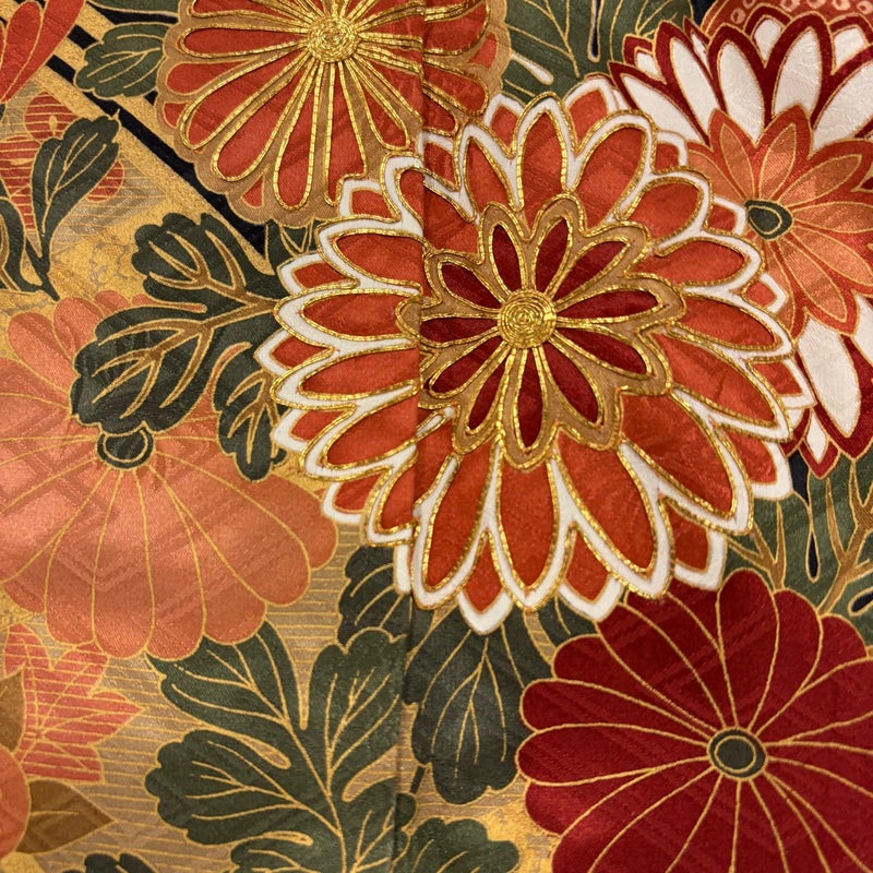 【着物ランク】秀品 【素材】正絹 【身丈】約159cm 【裄丈】約64.5cm 【袖丈】約106cm 【袖幅】約32cm 【前幅】約24cm 【後幅】約30cm 【サイズ】M 【着物仕立て】袷 【着用時期】10~5月 【帯丈2】約440cm 【帯幅2】約30cm 【状態ランク】ランクB 【着物着用シーン】成人式、謝恩会