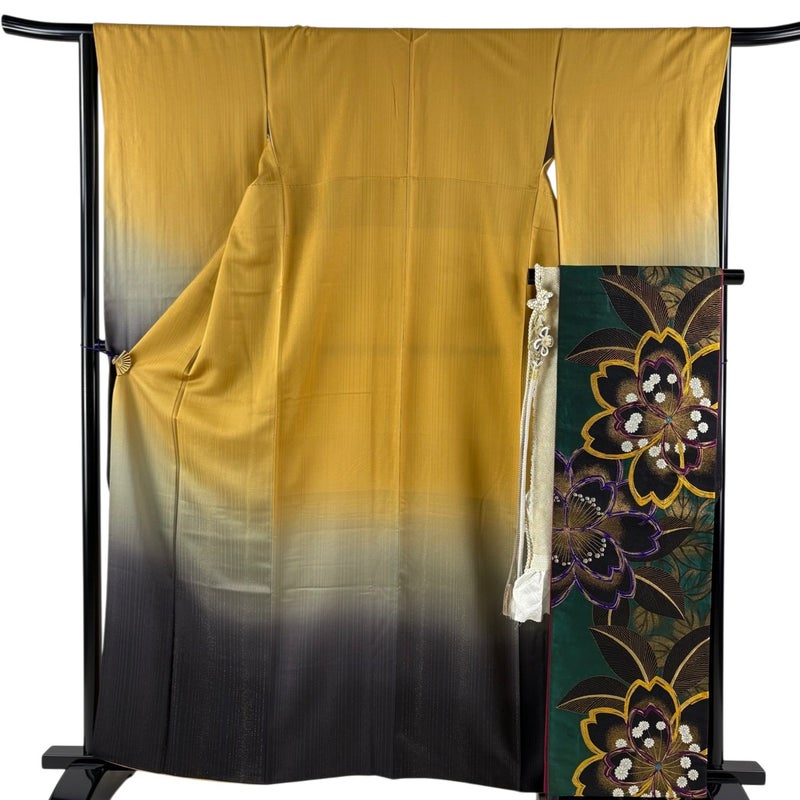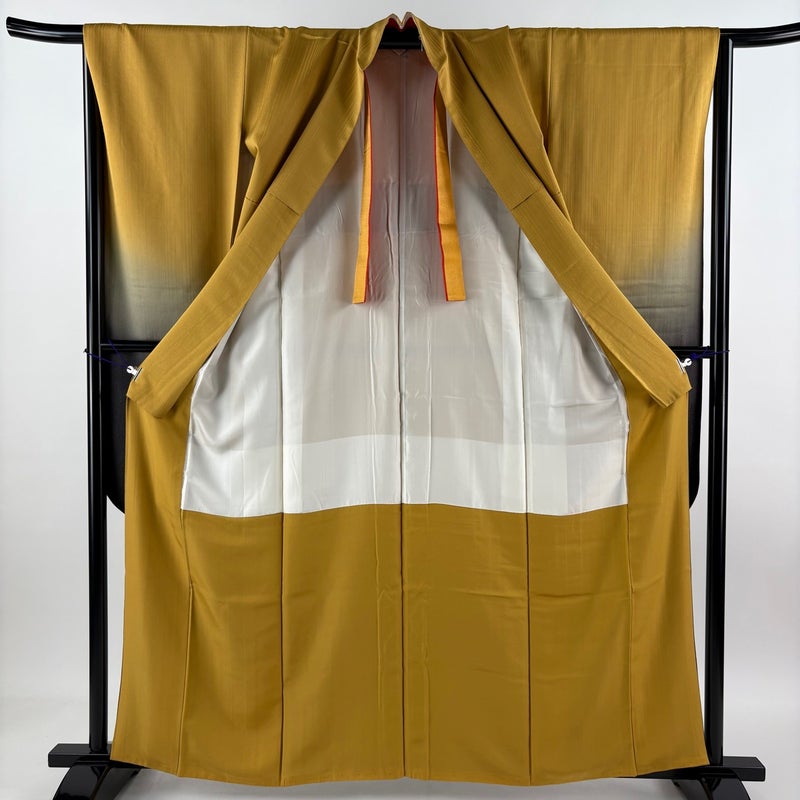 【振袖】 黄色系 黄土色 秀品 A 約160cm~約169cm 裄丈65cm (M)size 袖丈91cm以上 9990-29990 美品 五万以下