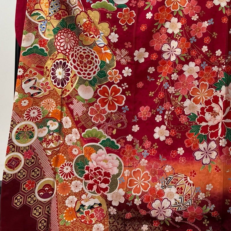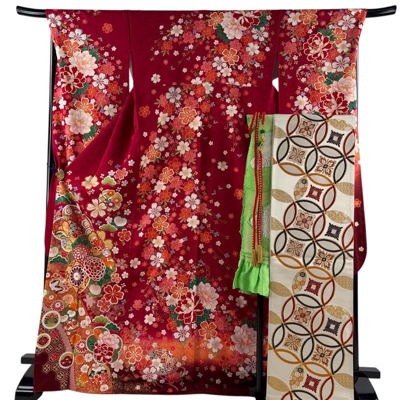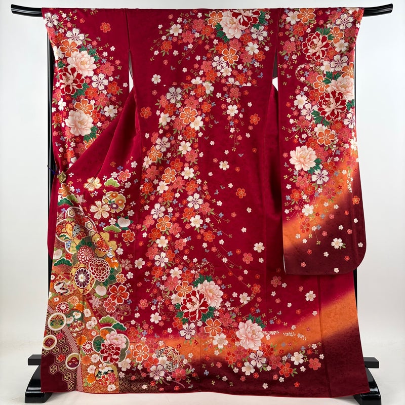 【振袖】 赤系 赤 名品 A 約170cm~約179cm 裄丈69cm以上 (L)size 袖丈91cm以上 9990-29990 美品 五万以下