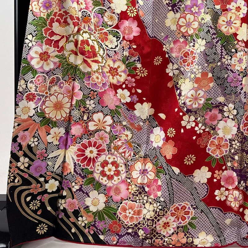 【振袖】 赤系 赤 名品 A 約170cm~約179cm 裄丈67cm-68cm (L)size 袖丈91cm以上 9990-29990 美品 五万以下