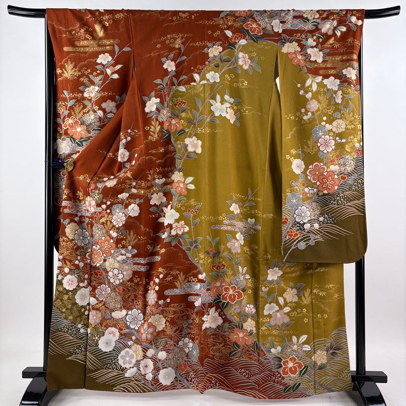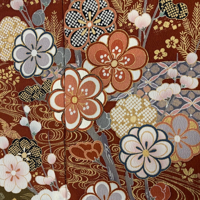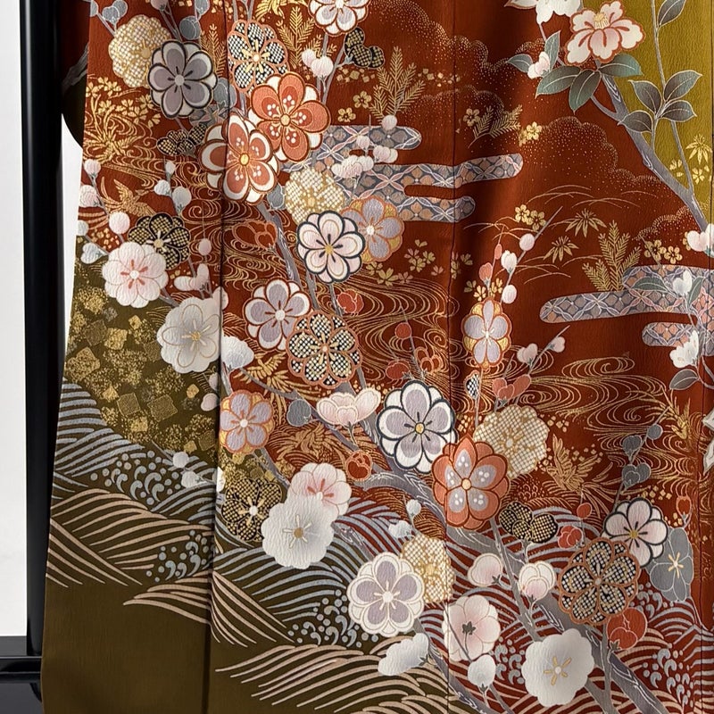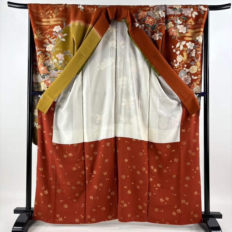 【振袖】 赤系 赤茶 名品 A 約160cm~約169cm 裄丈67cm-68cm (L)size 袖丈91cm以上 9990-29990 美品 五万以下