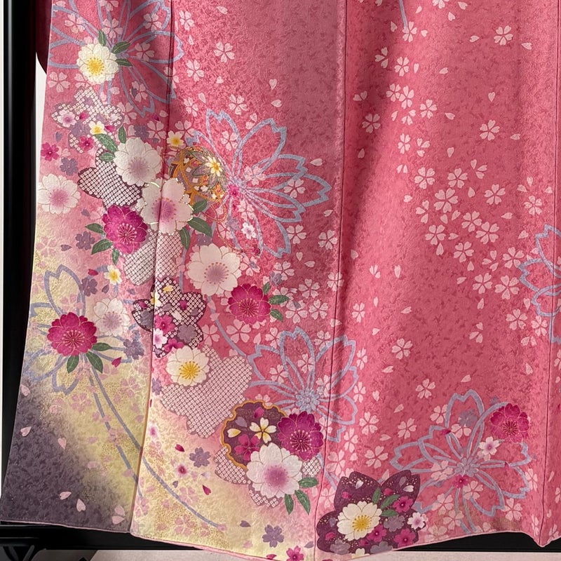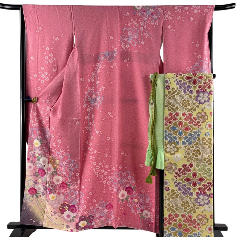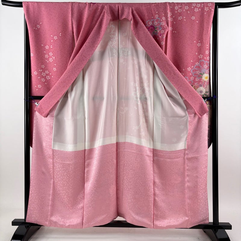 【振袖】 赤系 ピンク 名品 A 約150cm~約159cm 裄丈66cm (M)size 袖丈91cm以上 9990-29990 美品 五万以下