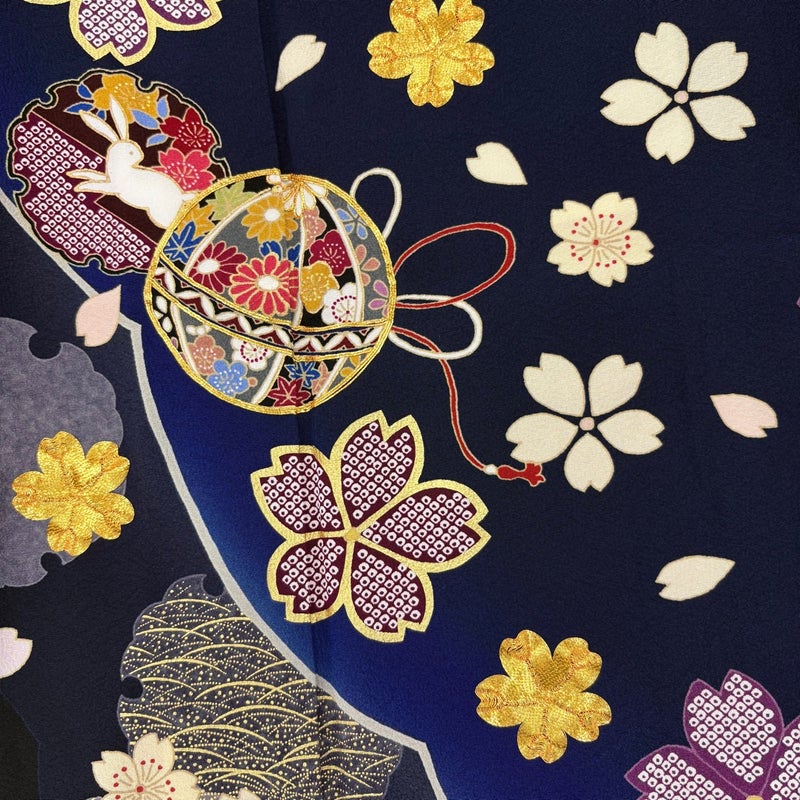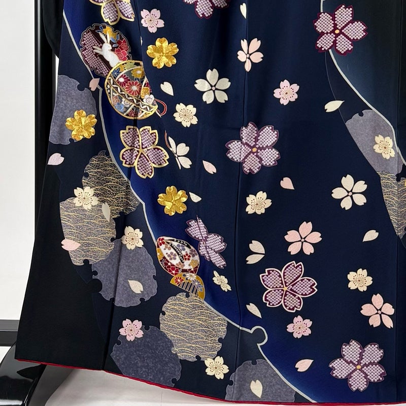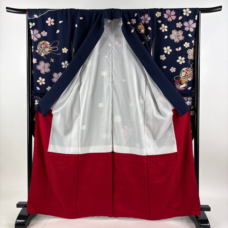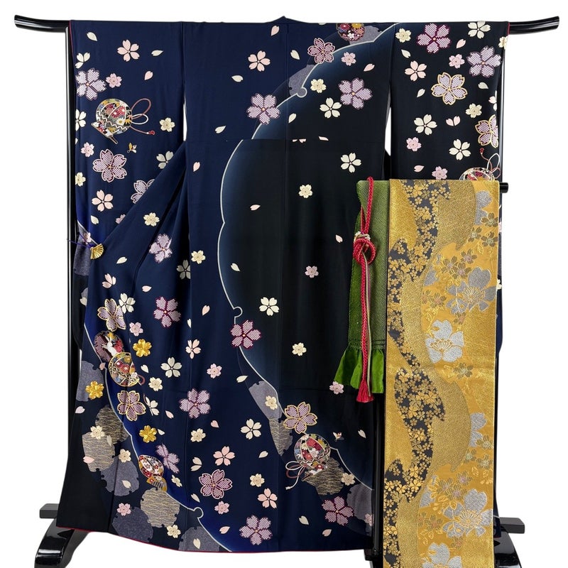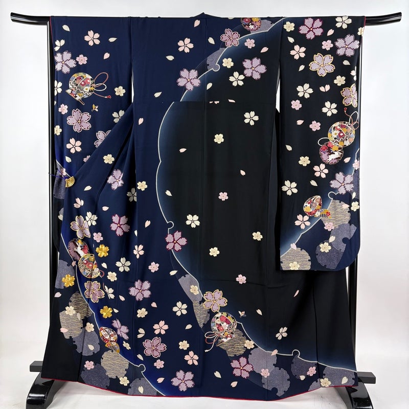 【振袖】 青系 濃紺 名品 B 約160cm~約169cm 裄丈67cm-68cm (M)size 袖丈91cm以上 9990-29990 五万以下