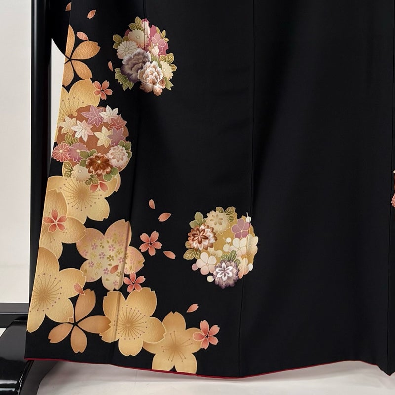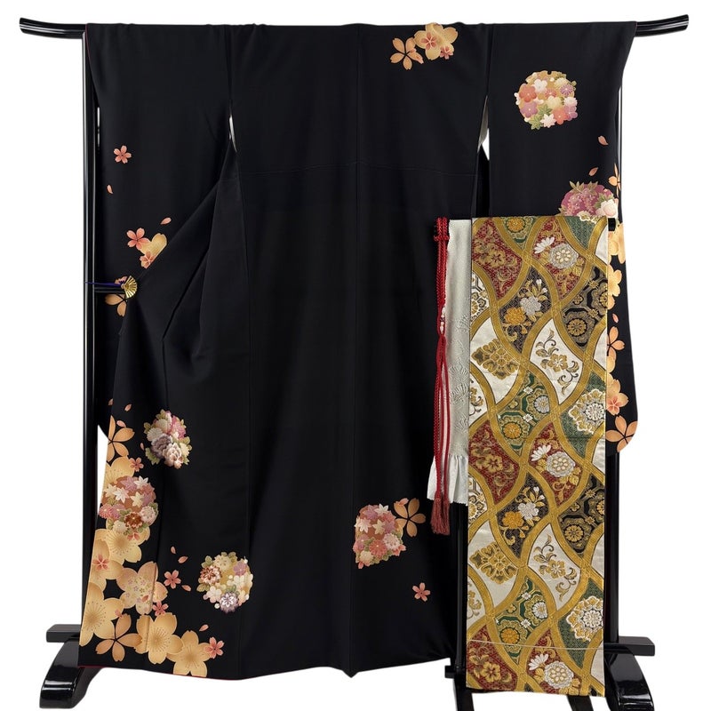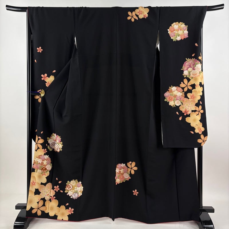 【振袖】 黒系 黒 秀品 A 約160cm~約169cm 裄丈67cm-68cm (L)size 袖丈91cm以上 9990-29990 美品 五万以下